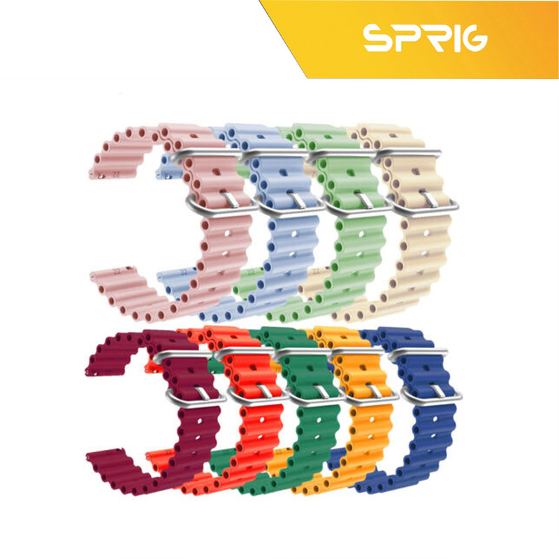 بند اسپریگ مدل Ocean سبک وزن، بادوام و قابل تنظیم، به طور یکپارچه از دو لایه پارچه، بدون دوخت بافته شده می باشد. از قلاب‌های تیتانیومی مقاوم در برابر خوردگی و بدون زنگ زدگی برای اتصال ایمن استفاده می کند. نوار ساخته شده از جنس سیلیکون سازگار با پوست، قابل تنفس، مقاوم در برابر عرق و مقاوم در برابر آب میباشد. همچنین با قلاب تیتانیوم ، سبک وزن میباشد. مناسب برای کوهنوردی، پیاده روی، دویدن، صخره نوردی، دویدن، دوچرخه سواری و سایر ورزش های ماجراجویی در فضای باز میباشد. بندهای طراحی شده برای ساعت اپل دارای یک هوک فلزی قابل تنظیم برای انعطاف پذیری و ایمن کردن بند شماست.