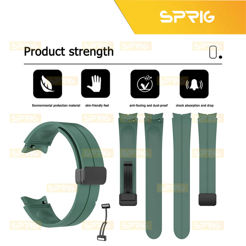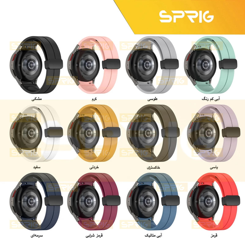 بندهای سیلیکون مگنت اسپریگ برای ساعتهای هوشمند سامسونگ طراحی شدهاند. این بندها از جنس سیلیکون نرم ساخته شدهاند و دارای قفل مگنتی هستند که باعث ماندگاری و راحتی در پوشیدن میشوند.