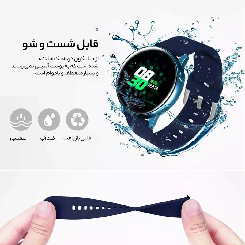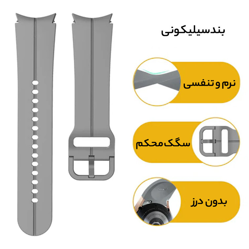 بند سیلیکونی دارای سطحی نرم و بسیار بادوام بوده و حس خوبی را به کاربر منتقل میکند. این بند با وزن سبکی که دارد، راحتی قابل توجهی را برای کاربر فراهم میکند. با خرید بند سیلیکونی که در رنگ بندی متنوع در دسترس است، میتوان استایل این ساعت را به سلیقه کاربر تغییر داد. از جمله نقاط قوت آن قابلیت نصب و جداسازی سریع است. درواقع این بند سیلیکونی دارای قفل سگکی و ضدحساسیت استیل بوده و به خوبی و به سرعت در مچ دست چفت میشود و حس امنیت را در کاربر ایجاد میکند. همچنین دکمهای در این بند اسپورت ساعت قرار داده شده که کاربران میتوانند به راحتی تنها با فشردن آن، بند ساعت را خارج کنند. از جمله قابلیتهای این محصول که کاربران را ترغیب به خرید بند سیلیکونی میکند، میتوان به خاصیت ضدتعریق، ضد گرد و خاک و ضدآب آن اشاره کرد.