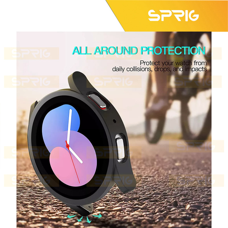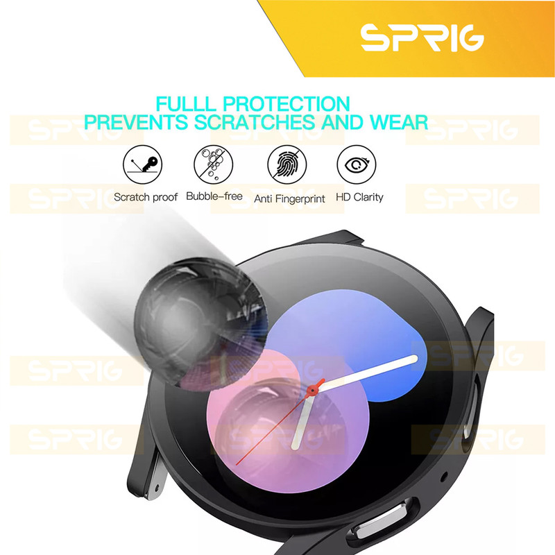 کاور اسپریگ بدنه‌ای از جنس پلی‌کربنات دارد. این متریال نسبت به TPU سخت‌تر بوده و با اینکه نسبت به آن انعطاف‌پذیری کمتری دارد ولی محافظ قوی‌تر و مستحکم‌تری محسوب می‌شود. هرچند سخت بودن این کاور اختلالی در نصب آن ایجاد نمی‌کند و با کمی دقت می‌توان به آسانی آن را روی ساعت نصب نمود. برش‌کاری دقیق کاور در قسمت دکمه‌ها و پورت‌ها سبب شده تا در دسترسی به آن‌ها محدودیتی ایجاد نشود. علاوه بر این ضخامت کم این محصول واچ شما را بیش از حد برجسته نمی‌کند و کاملا با ابعاد ساعت هماهنگ است.گلس حرارت‌دیده متصل به این کاور نیز با بهره‌گیری از یک طراحی هوشمندانه به خوبی فشار لمس را به صفحه نمایش ساعت انتقال می‌دهد و تا حد ممکن اختلالی در عملکرد تاچ ایجاد نمی‌کند.