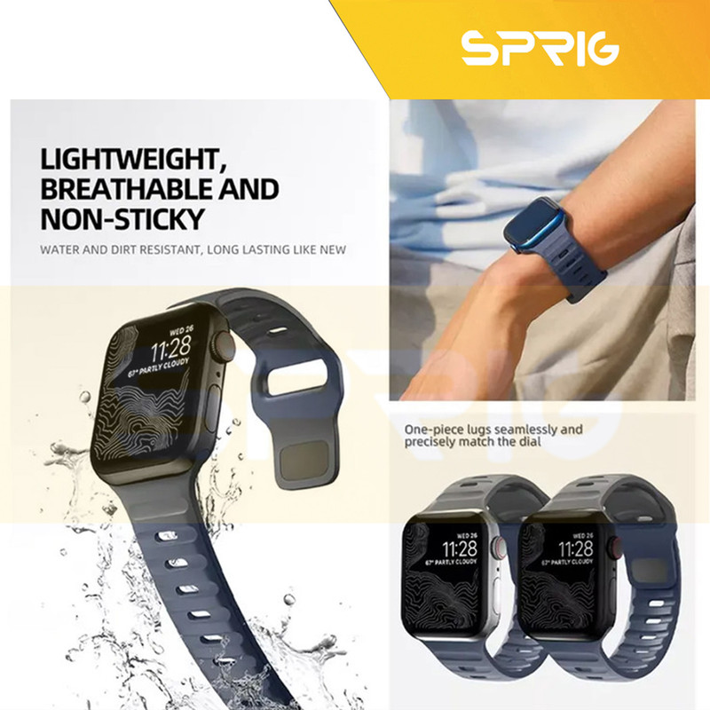 بند اسپریگ مدل Spig Sport strap سبک وزن، بادوام و قابل تنظیم می باشد. نوار ساخته شده از جنس سیلیکون سازگار با پوست، قابل تنفس، مقاوم در برابر عرق و مقاوم در برابر آب میباشد. مناسب برای کوهنوردی، پیاده روی، دویدن، صخره نوردی، دویدن، دوچرخه سواری و سایر ورزش های ماجراجویی در فضای باز میباشد. بندهای طراحی شده برای ساعت اپل دارای یک هوک فلزی قابل تنظیم برای انعطاف پذیری و ایمن کردن بند شماست.
