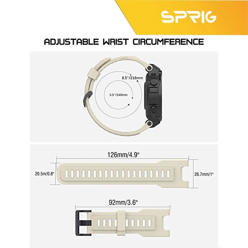 بند اسپریگ مدل TRX دارای وزنی سبک قیمتی مناسب همراه باکیفیت و دوام عالی وضد آب بودن درکنار تنوع رنگ تکمیل کننده استایل اسپرت و ورزشی شما خواهد بود. به همراه داشتن دوعدد ابزار مخصوص درکنار بند تعویض بند این ساعت را برایتان آسوده کرده است . بندهای سیلیکونی به دلیل وزن سبک و رنگ پریده نشدن به مرور زمان همیشه جز بهترین گزینه ها بوده اند.متریال این بند سیلیکونی هیچ آسیبی به پوست دست نمیرساند و روی آن حس نرم و خوبی دارد. این بند طوری طراحی شده که جلوی جریان هوا را نگیرد و وقتی آن را استفاده میکنید مچتان عرق نکند. این ویژگی آن را به یک انتخاب خوب برای استفاده در هنگام فعالیتهای ورزشی تبدیل میکند. بند اسپریگ مدل TRX انعطاف پذیری خیلی خوبی دارد. با خم و راست و فشرده شدن تغییر شکل نمیدهد و خاصیت ارتجاعی دارد. قسمتهای فلزی مانند پین و قفل از جنس ضد حساسیت فولاد ضد زنگ ساخته شدهاند. بنابراین هم مشکلی برای کاربر ایجاد نمیکنند و هم دوام بالایی دارند و دچار تغییر رنگ نمیشوند.