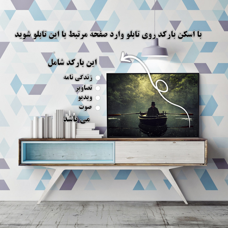 | سایر توضیحات | بر روی چاپ تصویر این تابلو در گوشه قاب , بارکد با قابلیت اسکن وجود دارد که شما را به صفحه از پیش طراحی شده برای این هنرمند هدایت می نماید. |