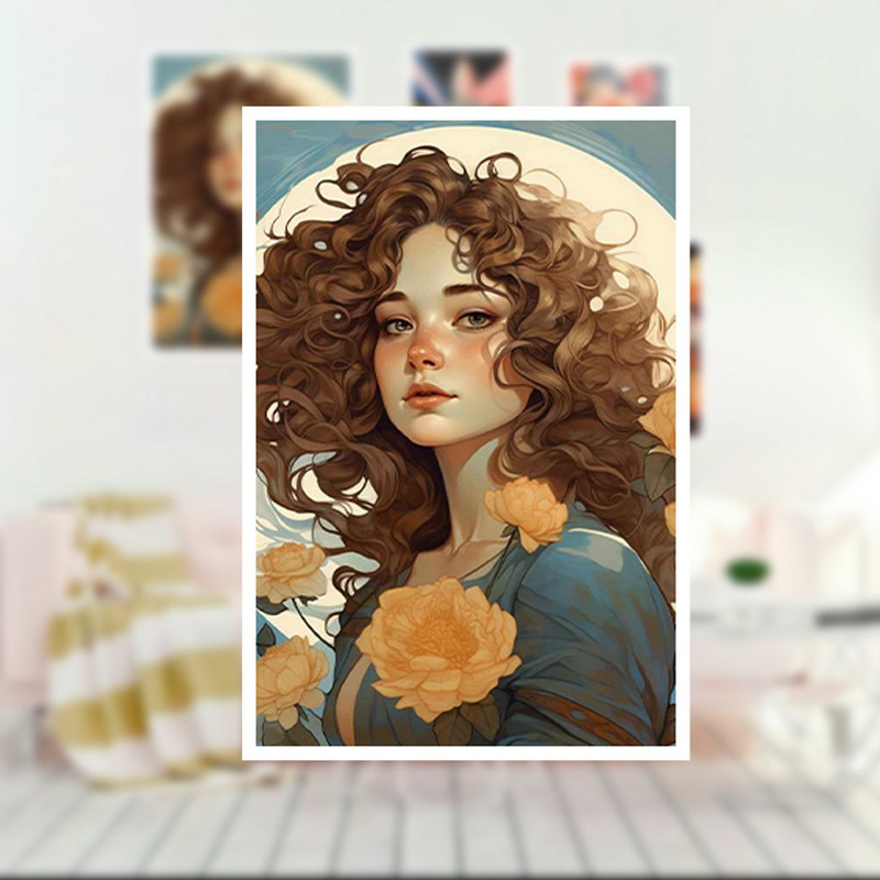 تابلو بکلیت طرح دختر و گل رنگی مدل W-1206 مجموعه 5 عددی