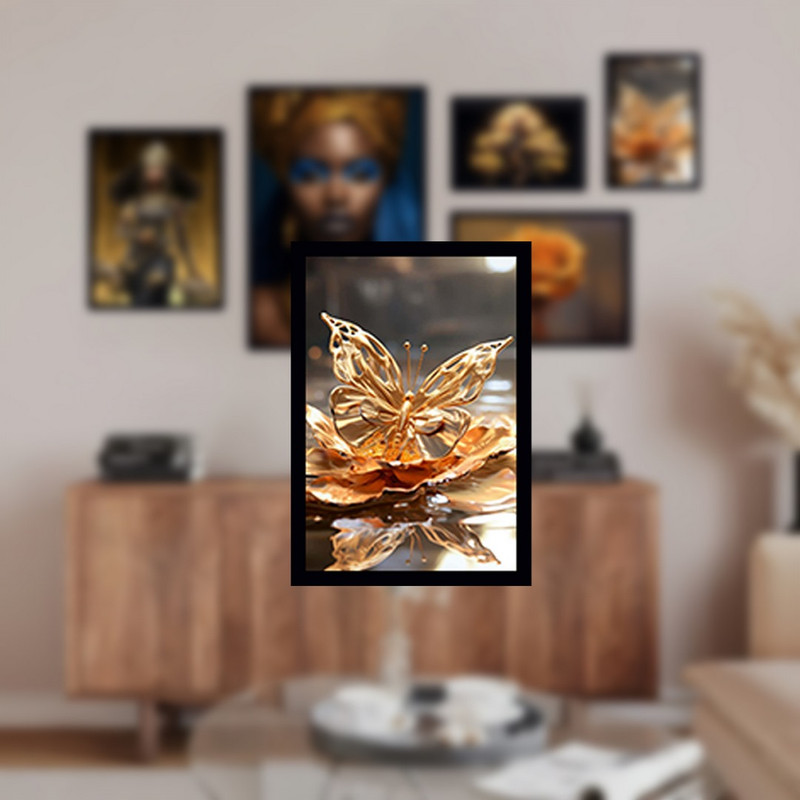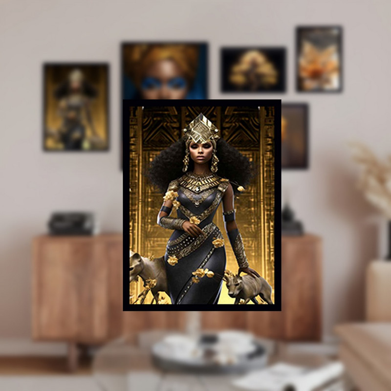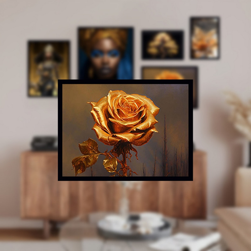 تابلو بکلیت طرح دکوراتیو زن سیاه پوست و گل طلایی مدل B-1222 مجموعه 5 عددی