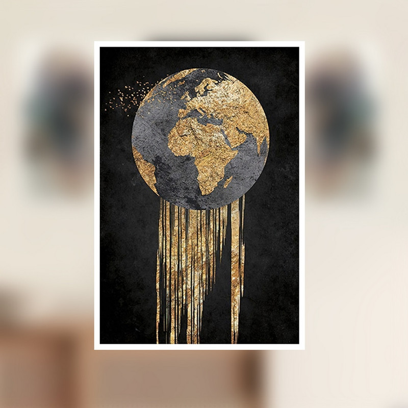 تابلو بکلیت طرح دکوراتیو و ورق طلا کره ی زمین و گل مدل W-777 مجموعه 3 عددی
