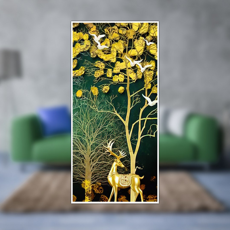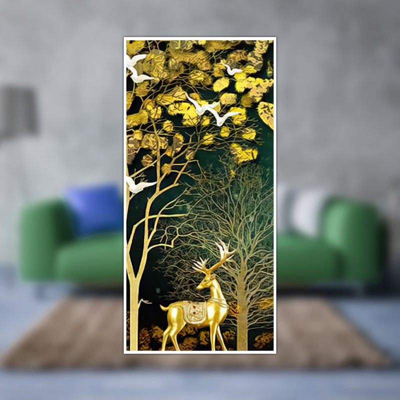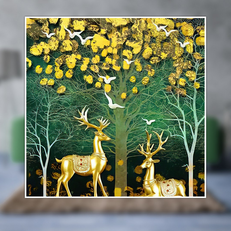 تابلو بکلیت طرح دکوراتیو گوزن طلایی مدل W-487 مجموعه 3 عددی