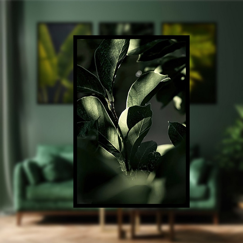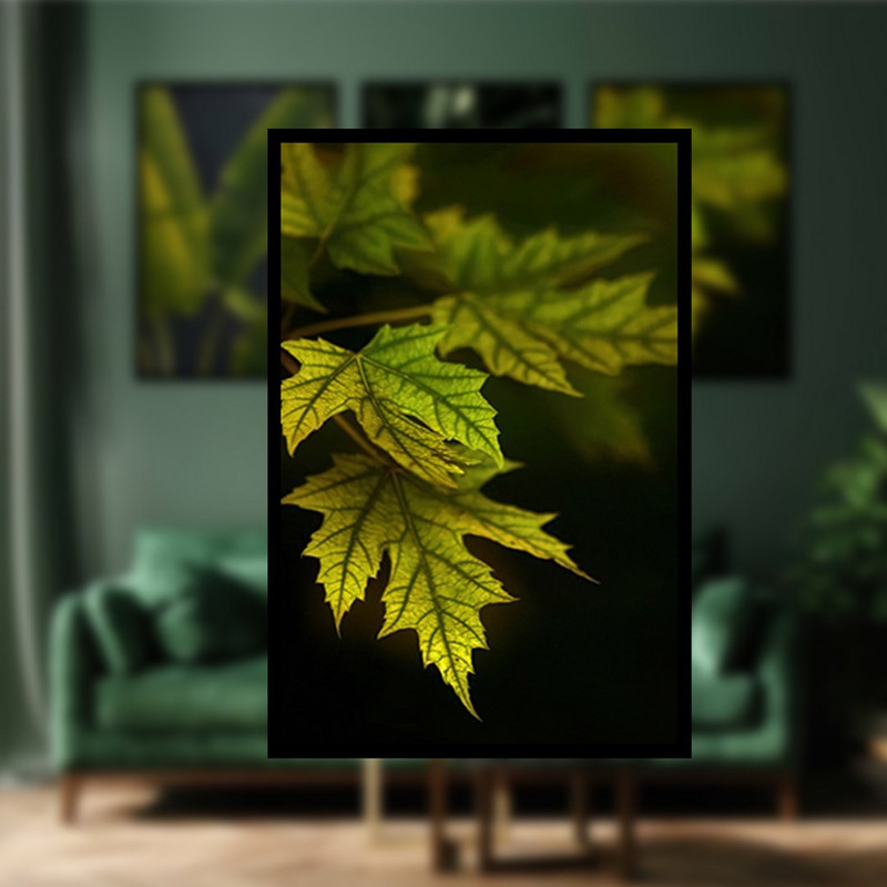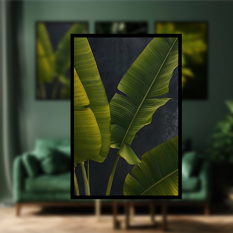 تابلو بکلیت طرح دکوری مدرن طبیعت و برگ سبز مدل B-1463 مجموعه 3 عددی