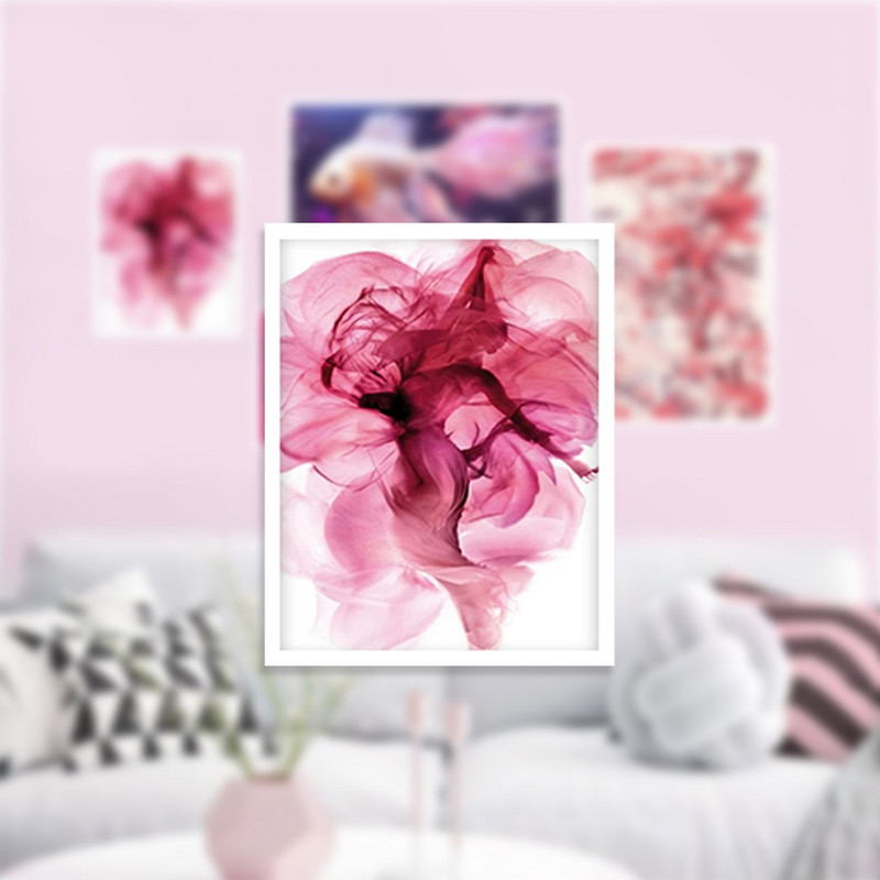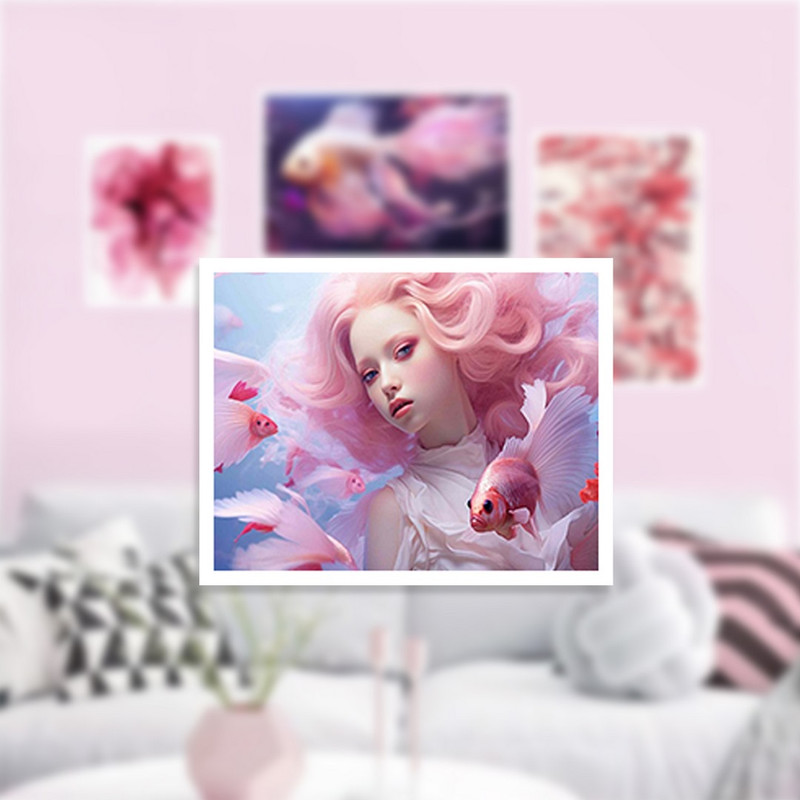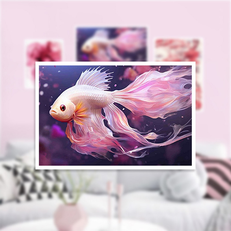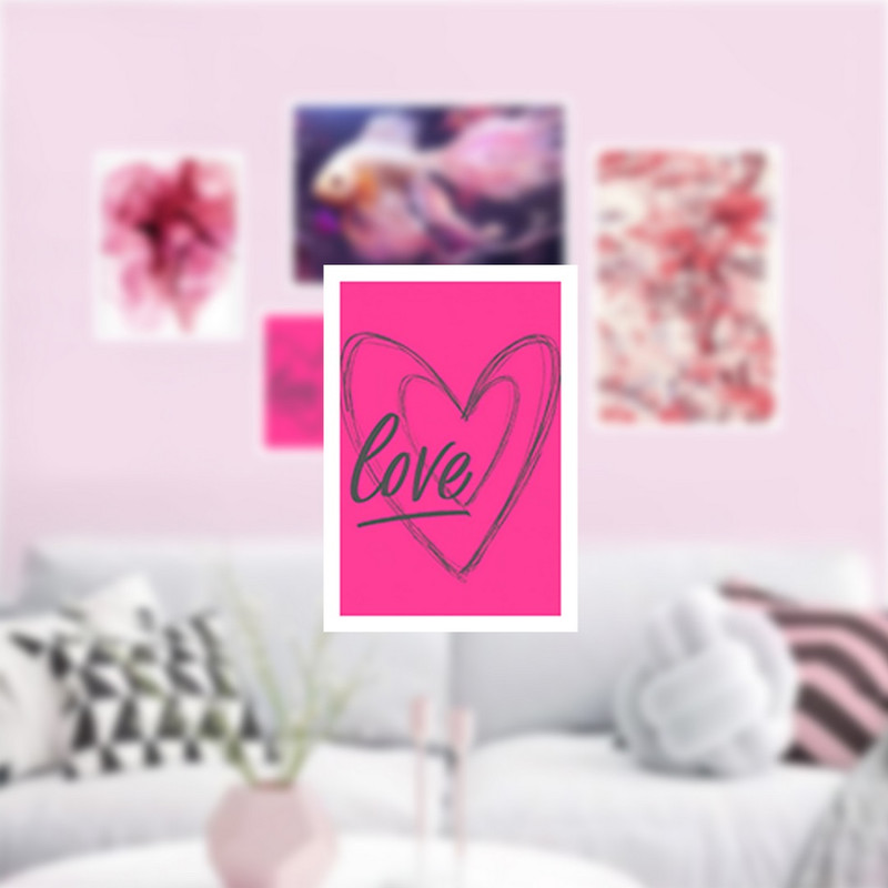 تابلو بکلیت طرح ماهی رنگی و گل صورتی و love مدل W-1200 مجموعه 5 عددی