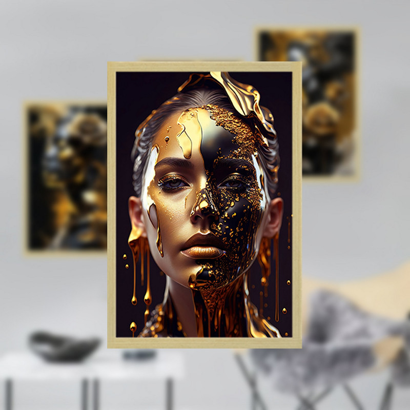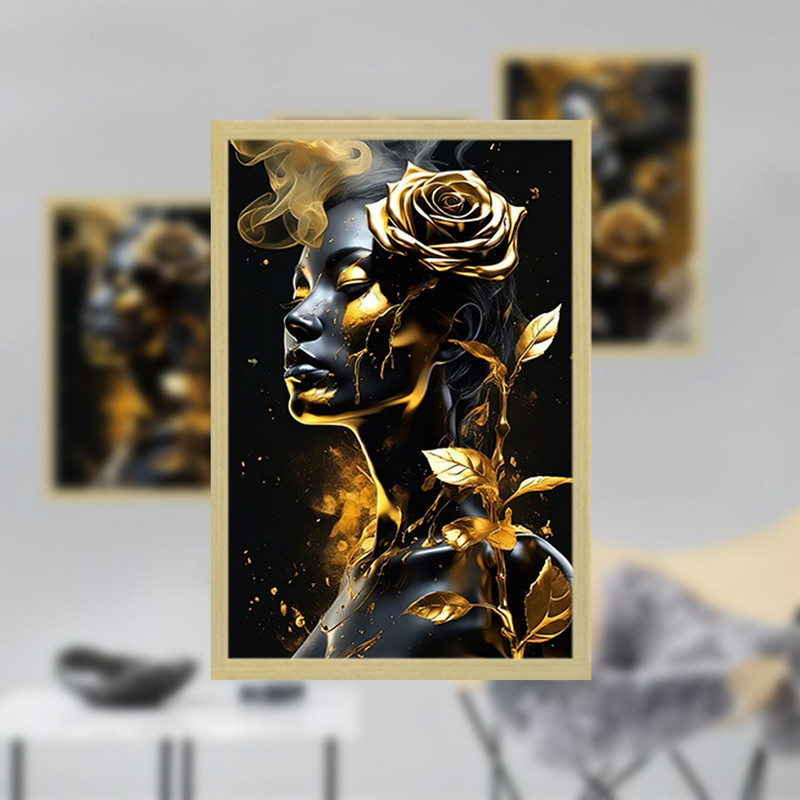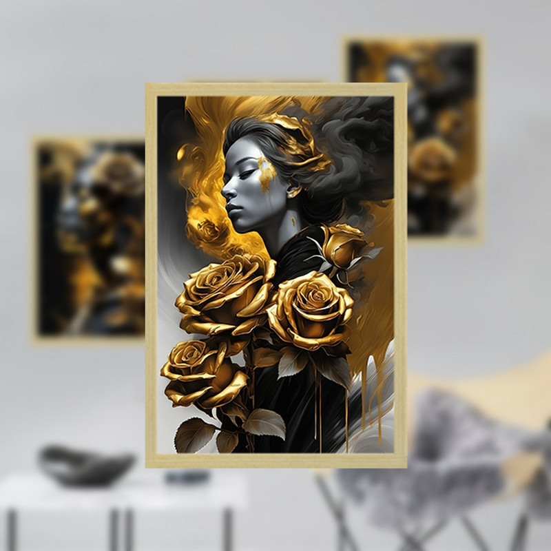 تابلو بکلیت طرح مدرن طلایی چهره و گل مدل BE-1812 مجموعه 3 عددی