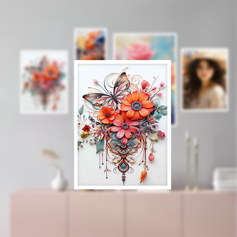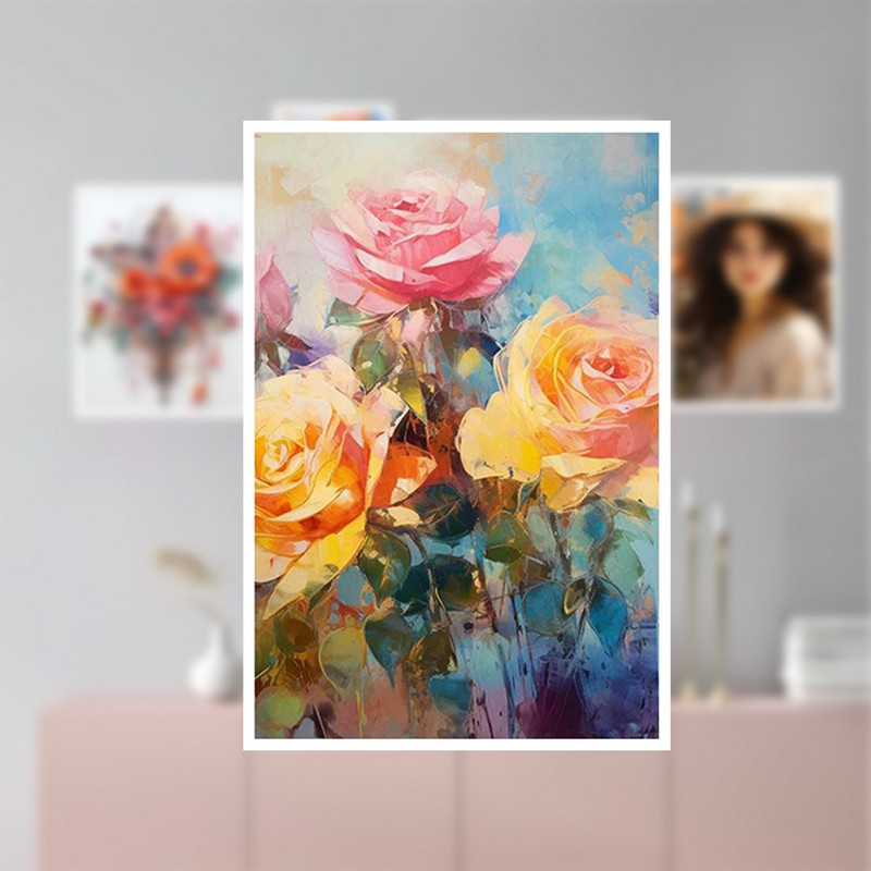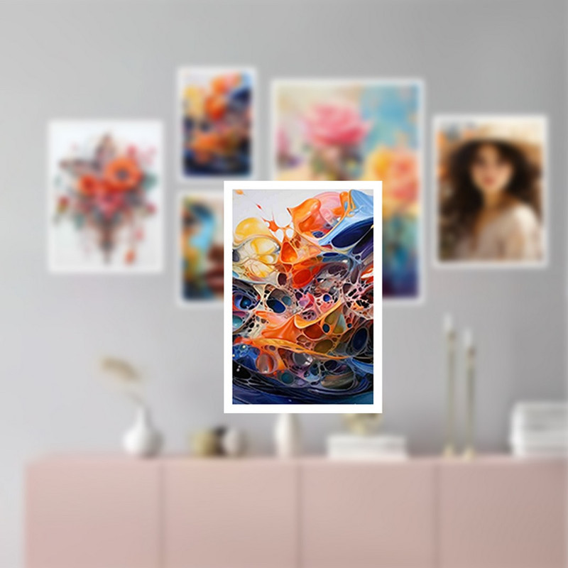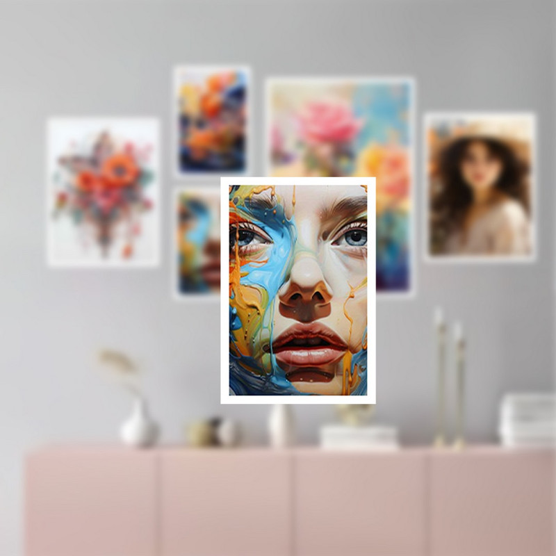 تابلو بکلیت طرح نقاشی رنگ روغن گل رنگی و چهره مدل BE-1171 مجموعه 5 عددی