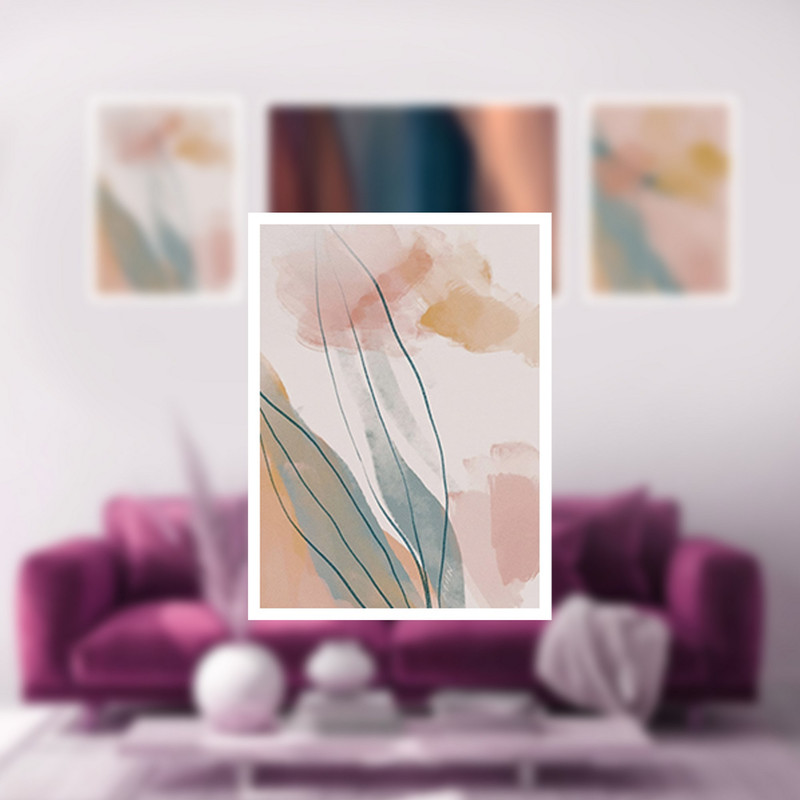 تابلو بکلیت طرح نقاشی مدرن آبرنگی مدل W-1736 مجموعه 3 عددی