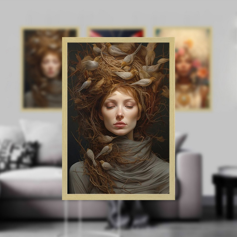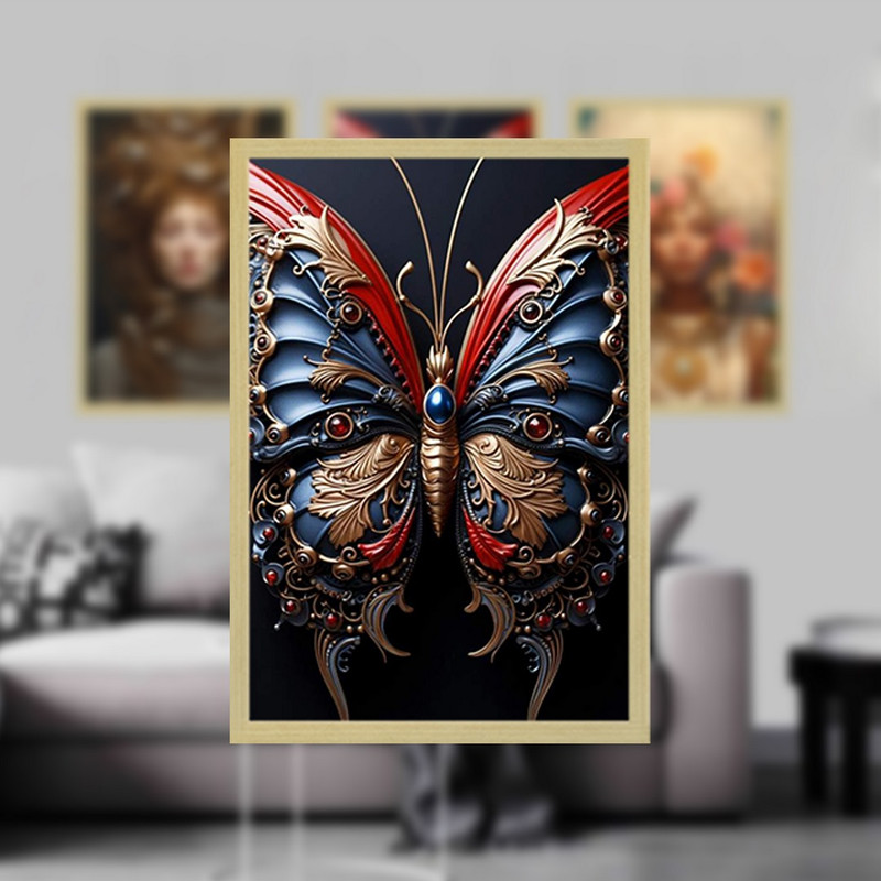 تابلو بکلیت طرح نقاشی مدرن چهره زن و پروانه مدل BE-1176 مجموعه 3 عددی