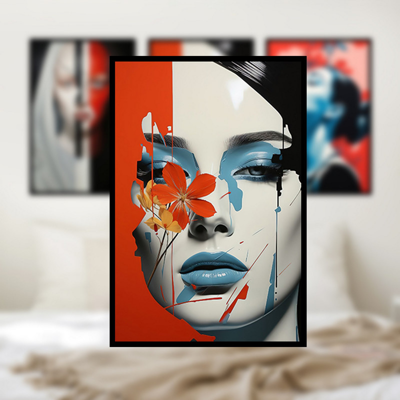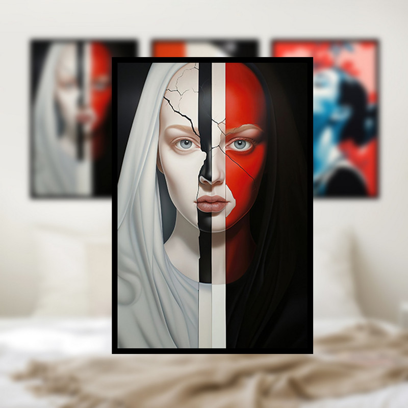 تابلو بکلیت طرح نقاشی مدرن چهره مدل B-1826 مجموعه 3 عددی