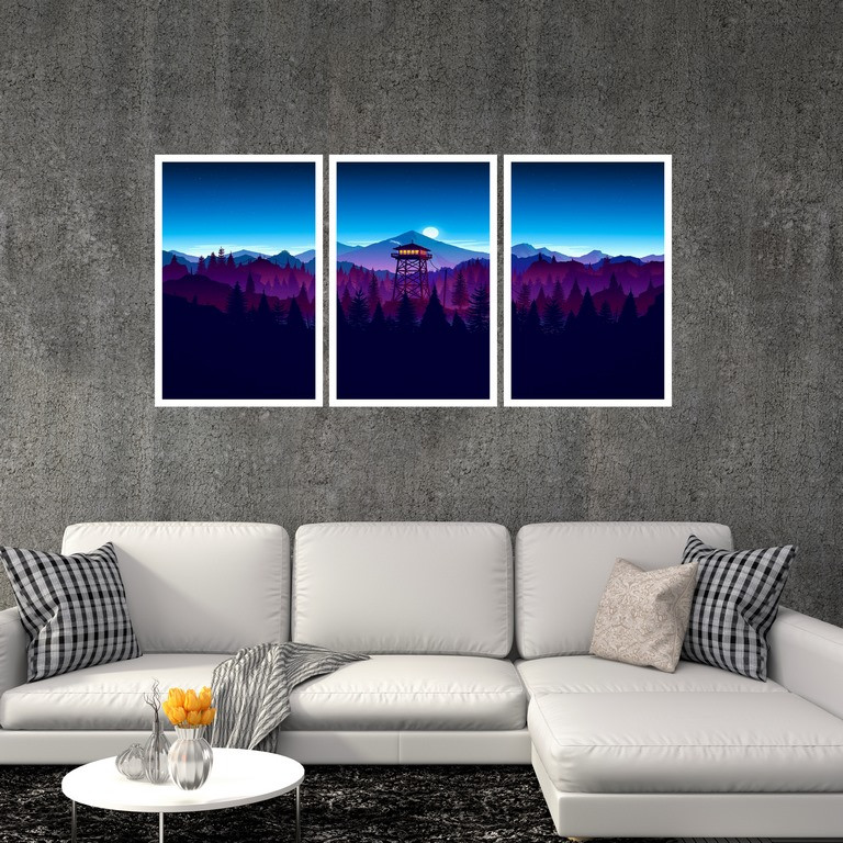 تابلو بکلیت طرح نقاشی منظره جنگل مدل W-S4856 بسته 3 عددی