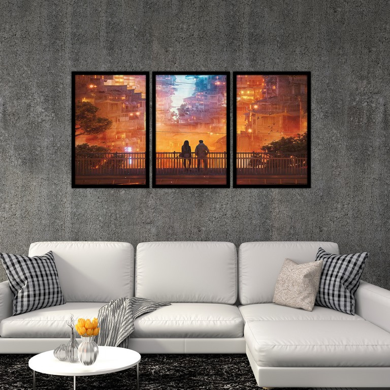 تابلو بکلیت طرح نقاشی منظره شهری مدل B-S4778 مجموعه 3 عددی