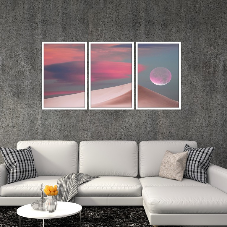 تابلو بکلیت طرح نقاشی منظره کویری مدل W-S4780 مجموعه 3 عددی
