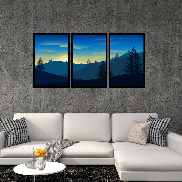 تابلو بکلیت طرح نقاشی منظره ی کوهستان و جنگل سوزنی مدل B-S4975 مجموعه 3 عددی