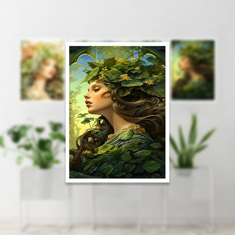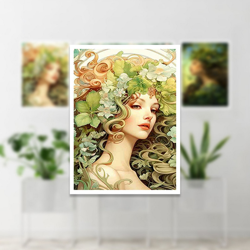 تابلو بکلیت طرح نقاشی چهره زن و گل مدل W-1179 مجموعه 3 عددی