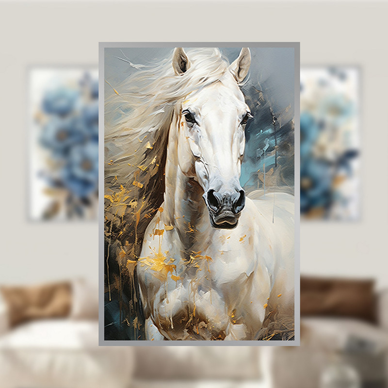 تابلو بکلیت طرح نقاشی گل و اسب مدل SI-1591 مجموعه 3 عددی