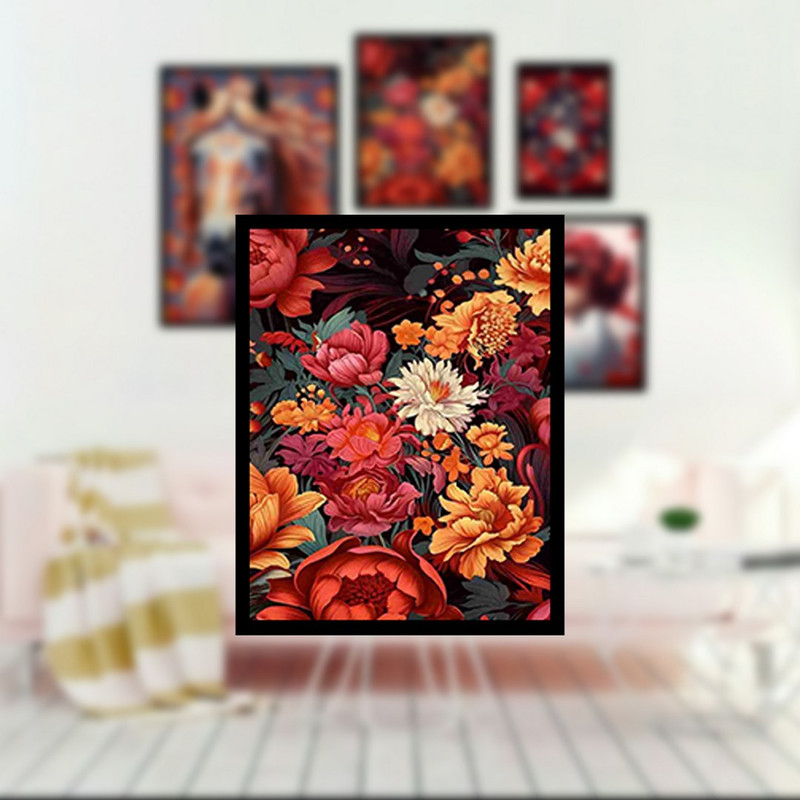 تابلو بکلیت طرح پرتره چهره و اسب و گل مدل B-1276 مجموعه 5 عددی