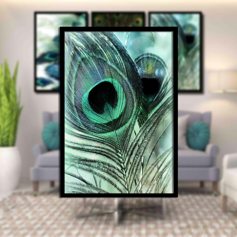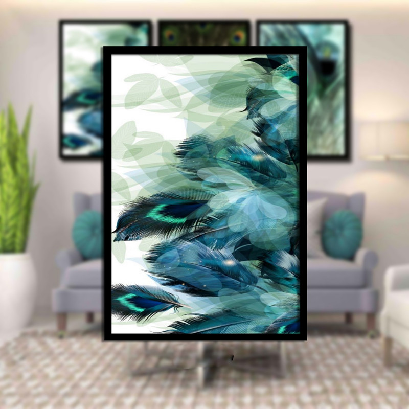 تابلو بکلیت طرح پر و طاووس مدل دکوراتیو B-238 مجموعه 3 عددی