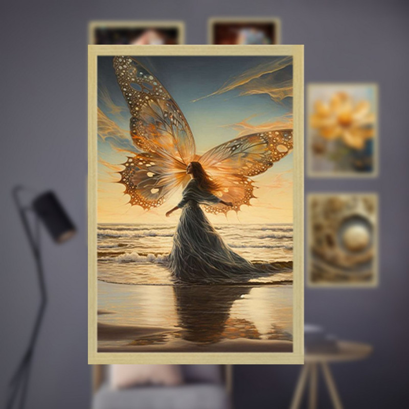 تابلو بکلیت طرح گرافیکی فرشته گل و پروانه مدل BE-1284 مجموعه 7 عددی
