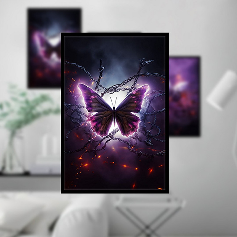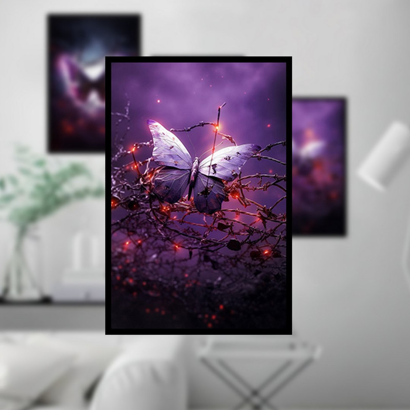 تابلو بکلیت طرح گل و پروانه دربند مدل B-1297 مجموعه 3 عددی