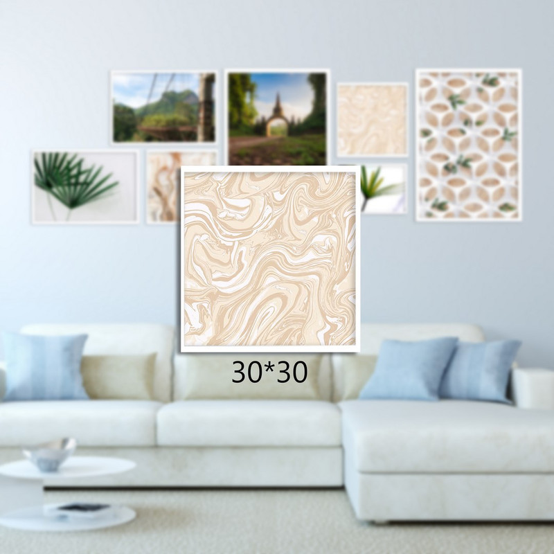 سایر توضیحات این مجموعه شامل 7 عدد تابلو با سایز های زیر می‌باشد: ----با انتخاب سایز 50x70 تابلو های ارسالی بصورت : 2 عدد 50x70 2 عدد 40x30 2 عدد 30x30 1 عدد 20x30 ----با انتخاب سایز 60x40 تابلو های ارسالی بصورت : 2 عدد 40x60 2 عدد 20x30 2 عدد 20x20 1 عدد 20x15 ----با انتخاب سایز 30x40 تابلو های ارسالی بصورت : 2 عدد 30x40 2 عدد 15x20 2 عدد 15x15 1 عدد 10x15 مشخصات قاب: نمای روبرو 2 سانتی متر در نمای کناری (عمق قاب) 2 سانتی متر ( 2x2 cm ) جنس پشت قاب :MDF سه میلیمتری برای سایز های 20x30 با پایین جنس پشت قاب :مقوا سه لایه سفید برای سایز های 20x30 به بالا آویز دنده ای و پیچ ریز برای نصب بر روی قاب شیشه 2 میلیمتری فلوت میخ یا پیچ و رول پلاک جهت نصب بر روی دیوار مقاوم در برابر نور و رطوبت هوا