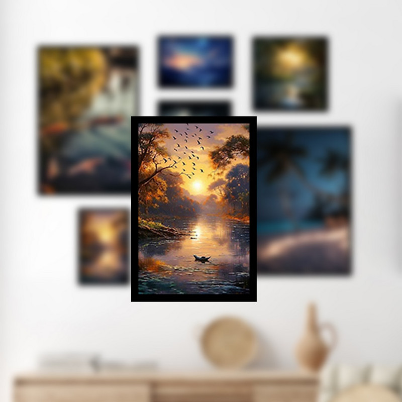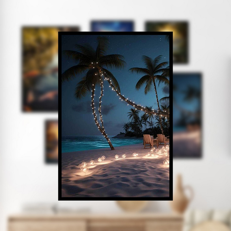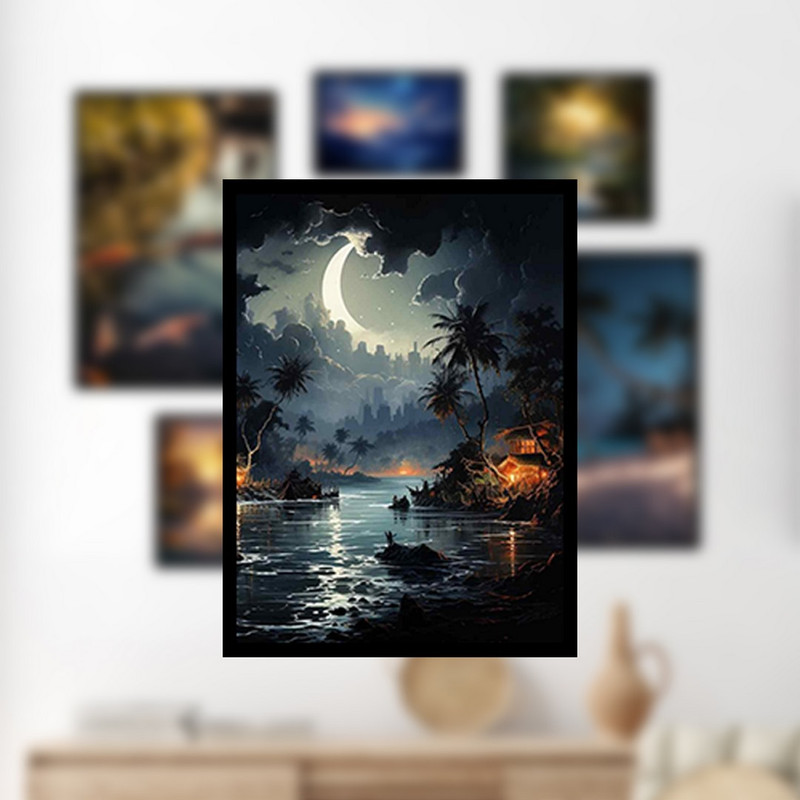 تابلو بکلیت مدل طرح طبیعت و آسمان شب و ماهی B-1128 مجموعه 7 عددی