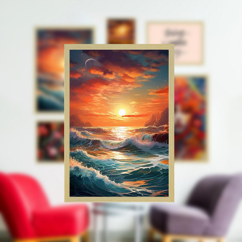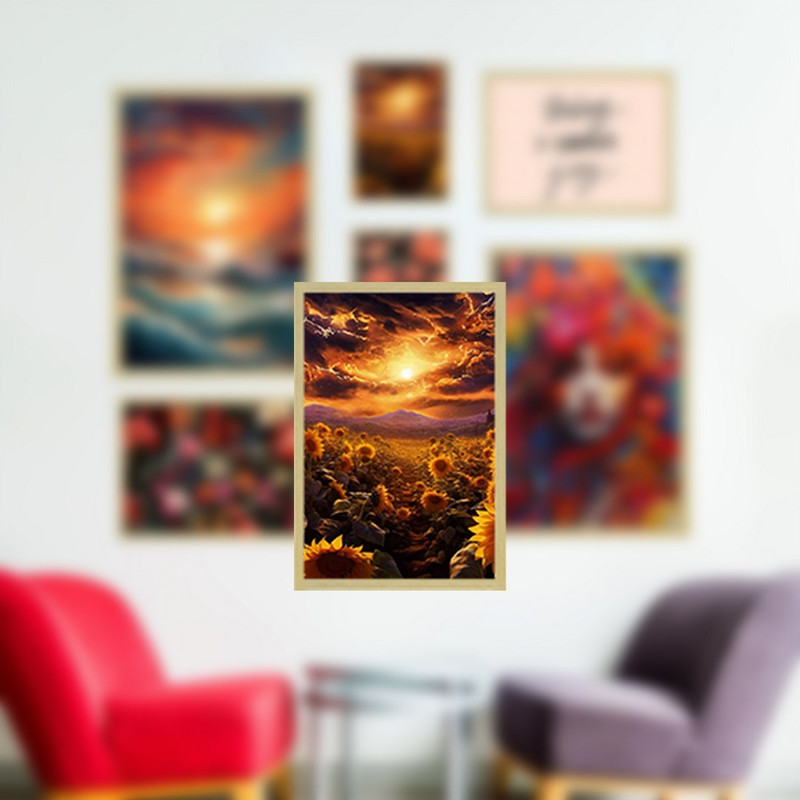 تابلو بکلیت مدل طرح موج دریا و گل رنگی آفتابگردان BE-1131 مجموعه 7 عددی