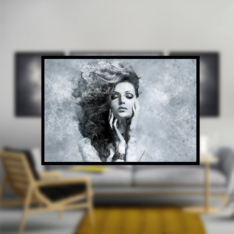 تابلو بکلیت مدل طرح پرتره زن و اسمان ابری B-1055 مجموعه 3 عددی