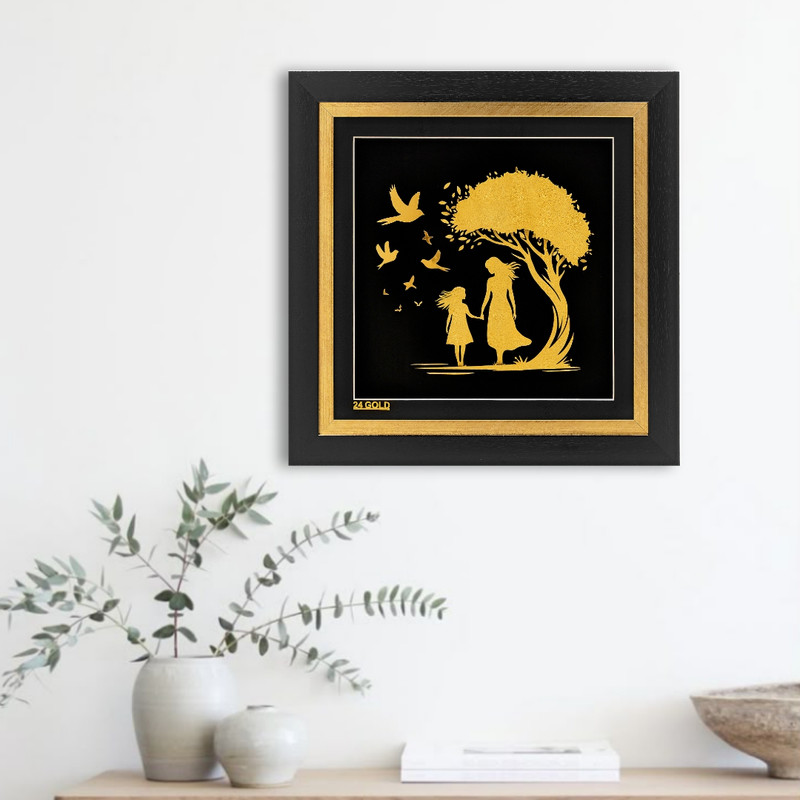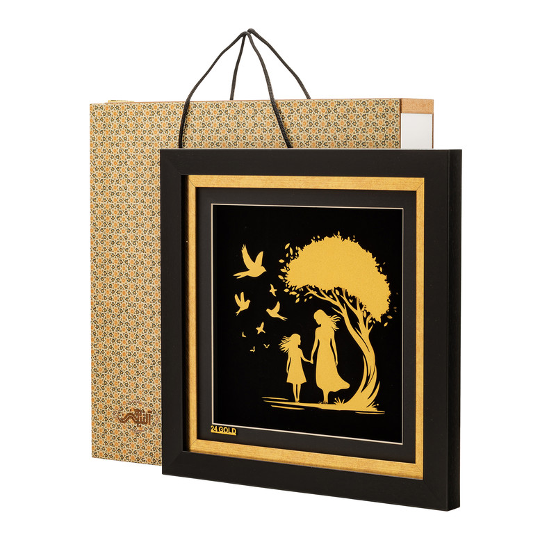 تابلوی تزئینی «سایهسار مهر» اثری احساسی و معناگراست که با بیانی ساده اما عمیق، مفهوم محبت، حمایت و پیوند عاطفی را به تصویر میکشد. در این اثر، پیکرهی مادر و کودک در کنار یکدیگر و زیر سایهی درختی استوار قرار گرفتهاند؛ درختی که نماد پناه، امنیت و تداوم زندگی است و پرندگان در حال پرواز، حس رهایی، آرامش و جریان زندگی را به فضا میافزایند. تمام عناصر تصویری تابلو با استفاده از ورق طلا بر روی زمینهی مشکی اجرا شدهاند که این ترکیب، کنتراستی چشمگیر ایجاد کرده و باعث درخشش ملایم و لوکس طرح در نورهای مختلف میشود. اجرای یکنواخت ورق طلا، دقت بالا در لبهها و تناسب خطوط، کیفیت بصری اثر را در سطحی دکوراتیو و هنری قرار داده است. قاب تابلو از جنس PVC با کیفیت ساخته شده که ضمن استحکام مناسب، ظاهر مدرن و تمیزی به کار میبخشد و به خوبی با فضای داخلی اثر هماهنگ است. تابلوی «سایهسار مهر» انتخابی ایدهآل برای فضاهای صمیمی مانند نشیمن، اتاق خواب، یا حتی محیطهای کاری با رویکرد انسانی و آرامشبخش است و همچنین میتواند هدیهای ارزشمند و ماندگار برای مناسبتهایی چون روز مادر، تولد یا یادبودهای خانوادگی باشد؛ اثری که حتی فارغ از معنای نمادین آن، بهعنوان یک المان دکوراتیو طلایی و چشمنواز، جلوهای گرم و دلنشین به هر فضا میبخشد.