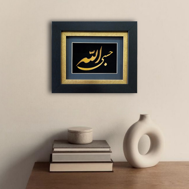تابلو خوشنویسی «حَسبیَ الله» اثری معنوی و درخشان است که با ترکیب هنرمندانه رنگ طلایی بر زمینهای مشکی جلوهای عمیق و روحبخش ایجاد کرده است. این عبارت شریف یادآور توکل و اعتماد کامل به خداوند متعال بوده و هر بار نگاه به آن، آرامش و اطمینان قلبی را در وجود انسان زنده میکند. قاب مشکی شیک با حاشیه طلایی براق، هارمونی چشمنوازی با متن تابلو ایجاد کرده و آن را به اثری فاخر و مناسب برای هر فضایی تبدیل نموده است. این تابلو میتواند بهعنوان دکوری زیبا و معنوی در منزل، محل کار، دفاتر رسمی یا فضاهای مذهبی نصب شود و علاوه بر زیبایی، پیام توکل، امید و آرامش را به محیط ببخشد. همچنین انتخابی ارزشمند و خاص برای هدیه دادن در مناسبتهای مذهبی و معنوی به عزیزان است؛ هدیهای که ماندگار میماند و همواره یادآور اتکای دل به خداوند خواهد بود.