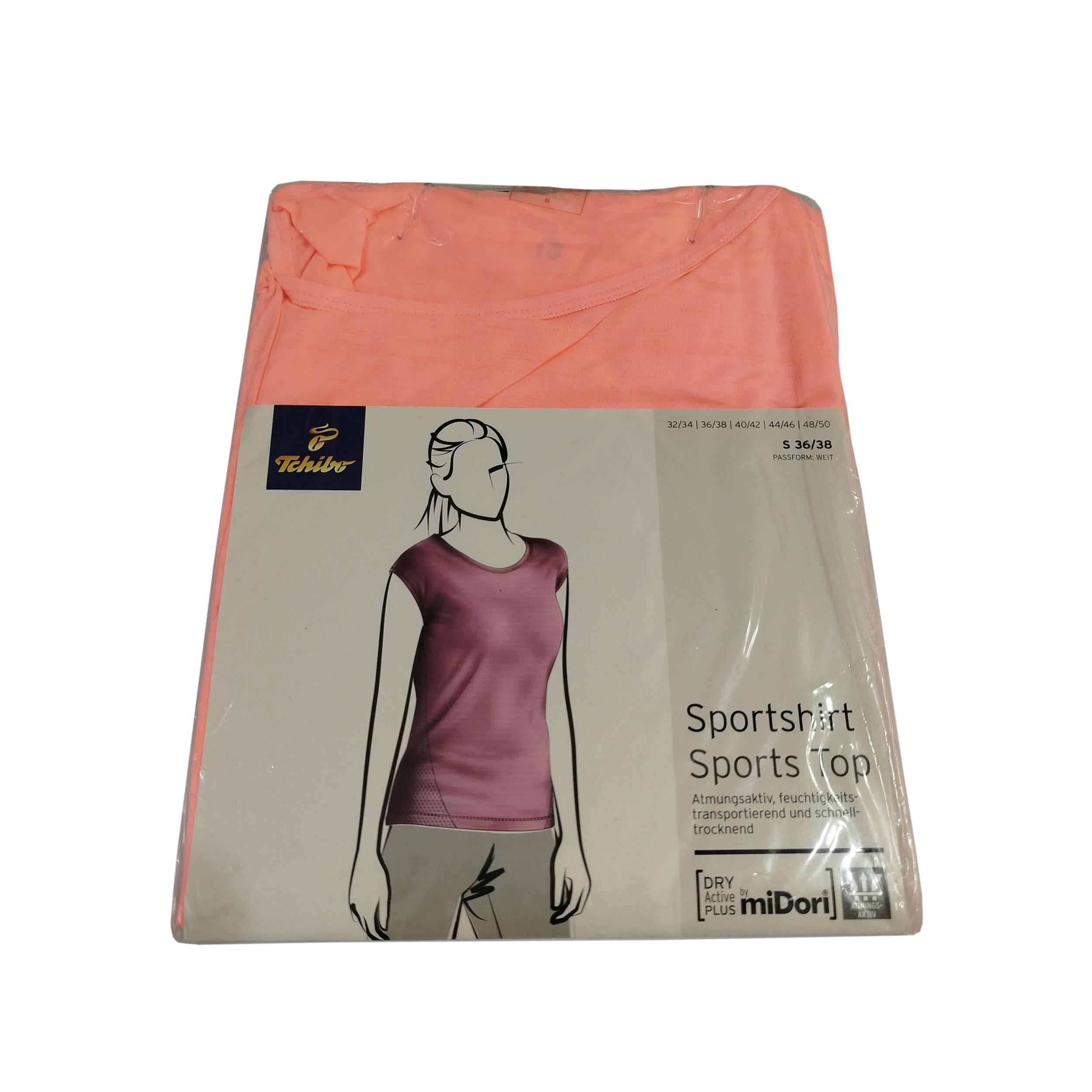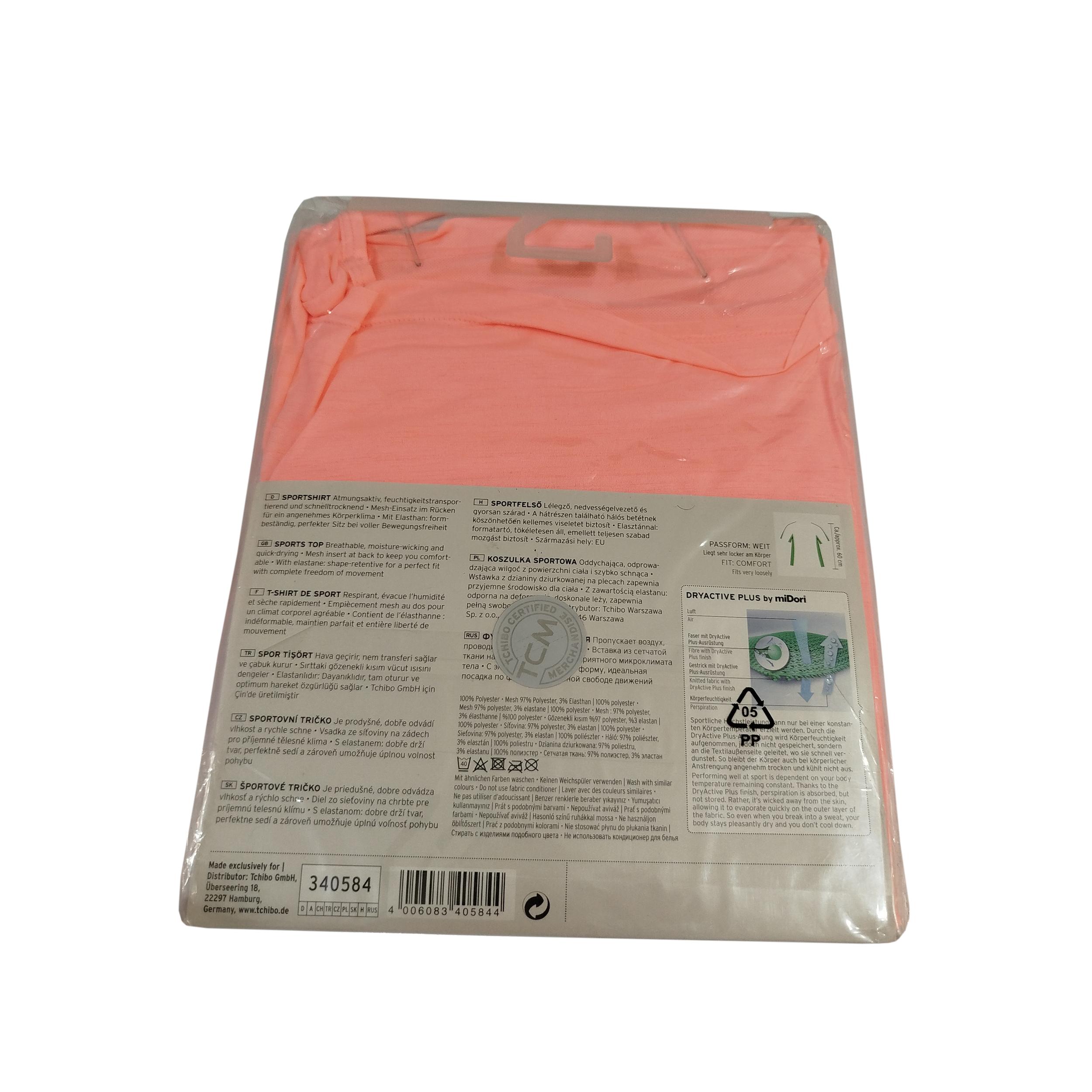تاپ ورزشی زنانه برند چیبو (Tchibo) یک برند آلمانی و تولید کشور آلمان می باشد. دارای توری در پشت برای راحتی شما می باشد. این تاپ دارای قابلیت گردش هوا است. همچنین جاذب رطوبت بوده و قابلیت خشک شدن سریع را دارد. جنس این تاپ از 97% پلی استر و 3% الاستین تشکیل شده است. قد لباس 60 سانتی متر است.