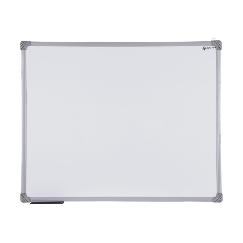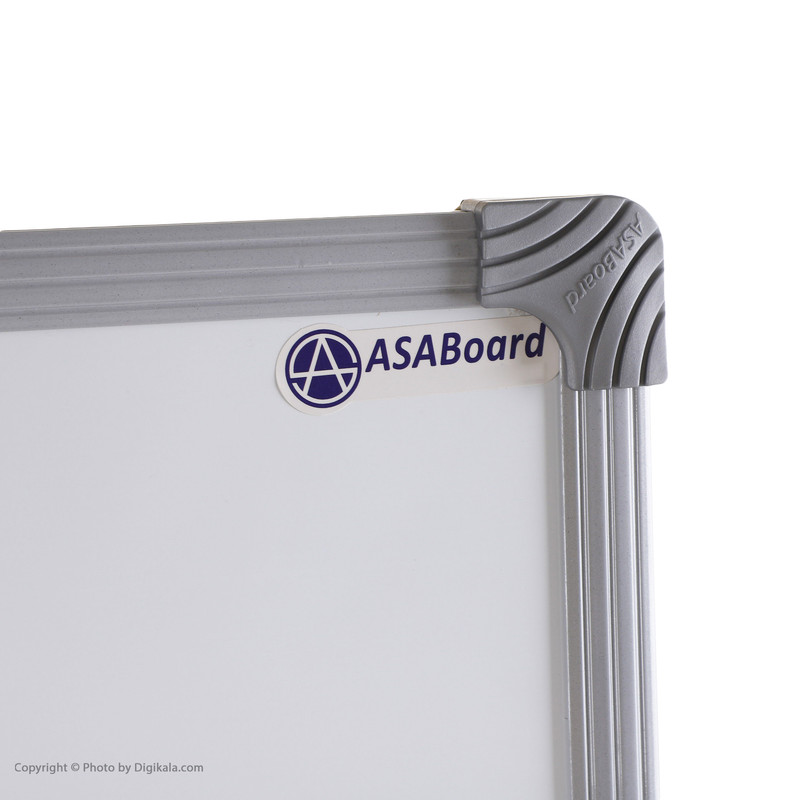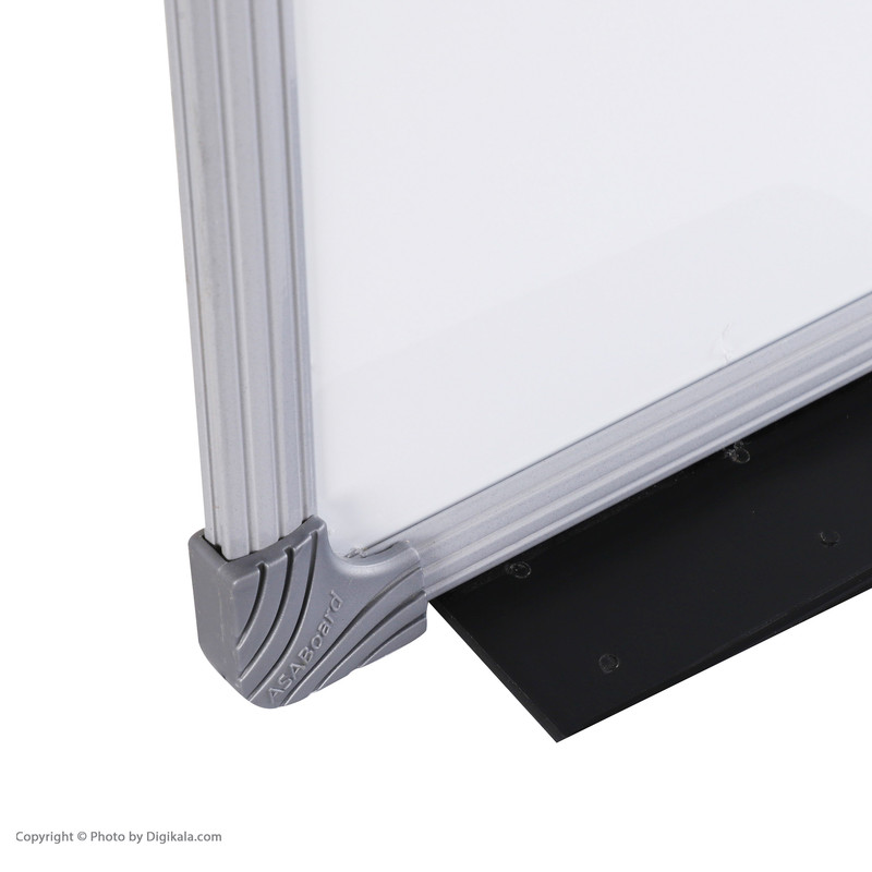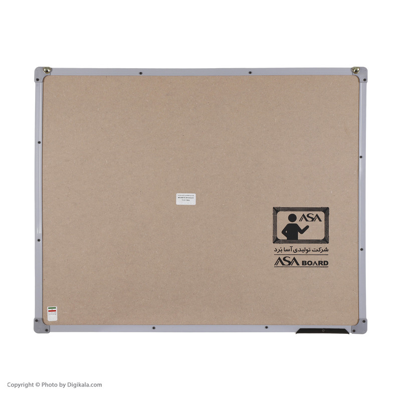 وایت برد مغناطیسی آسا بُرد فریم باریک (مدل بتا) تفاوت تخته وایت برد های مدل بتا با مدل آلفا تنها در ضخامت کار است که ضخامت مدل بتا 1 سانتی متر و مدل آلفا دو سانتی متر است این نوع تخته وایت برد دارای خاصیت مغناطیسی(اهنربایی) میباشد.رایج ترین و بهترین نوع تخته وایت بردها ،نوع مغناطیسی است. این نوع وایت بردها عمدتا در دانشگاه ها ، مدارس ،مراکز اموزشی اداری و... کاربرد دارد. اصلی ترین انتخاب وایت بردهای مغناطیسی به علت صفحه(ورق)استفاده شده در آن است. ورق وایت برد مغناطیسی، وارداتی از کشور کُره جنوبی به صورت فابریک leaf. کیفیت A(درجه یک)میباشد. متریال: جنس رویه صفحه وایت برد مغناطیسی : ورق وایت بردی کُره ای درجه یک دو پوششه، پاک شدن آسان و راحت بدون ایجاد سایه فریم وایت بردمغناطیسی: آلومینیوم آنادایز شده اکسترود، قالب انحصاری شرکت در تهیه پروفیل آلومینیوم های شرکت آسا برد از بیلت آلومینیوم استفاده میشود بااستفاده از مواد درجه یکــ (شمش)و عمل اکستروژن (شکل دهی و کشیده شدن)سپس عمل آنادایز( آبکاری) قاب الومینیوم مستحکم ،زیبا میشود همچنین مقاوم جهت ضد تاب برداشتن تخته میباشد فریم های الومینیوم وایت برد در رنگ نقره ای به صورت استاندارد و و همچنین رنگ مشکی (به صورت سفارشی تولید میشود گوشه های وایت برد مغناطیسی: پلاستیک تزریقی EBS انحصاری شرکت شکیل و زیبا داخل کار وایت برد مغناطیسی: پلی استایرن (یونولیت )فشرده ،دانسیته 8، طبق الحاقیه استاندارد ملی شماره 12108 مورخه اسفند1393، علت استفاده از پلی استایرن وزن سبک و مقاومت خوب ان میباشد که میان ام دی اف( پشت کار) و ورق اهن (رویه کار) قرار میگیرد.همچنین با استفاده از پرس گرم و چسبندگی مانع تاب برداشتن وایت برد و لق زدن صفحه میشود. جنس پشت کار وایت برد مغناطیسی: ام د ی اف 3 mil واناچای وسوماترا ( Vanachai و Sumatera وارداتی از کشور تایلند) مخصوص برای استفاده در هوای مرطوب و شرایط سخت مقاوم گردیده همچنین مقاوم جهت ضد تاب برداشتن تخته میباشد. ام دی اف نسبت به نئوپان و فیبرهای متفرقه مقاوم تر و سبک تر میباشد که باعث میشود محصول نهایی تولید شده با ظرافت، محکم وسبک باشد.همچنین به علت سطح صاف وکیفیت ام دی اف های وارداتی تشخیص ام دی اف از نئوپان و فیبر های متفرقه در پشت کار برای مصرف کنندگان بسیار راحت میباشد.