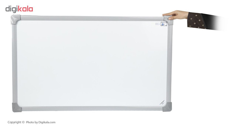 صفحه ی وایت برد ورق آهن مغناطیسی وارداتی فریم آن آلومینیوم اکسترود و آنادایز شده (آلومینیوم رنگ شده)قلاب های نصب در پشت صفحه قرار دارد