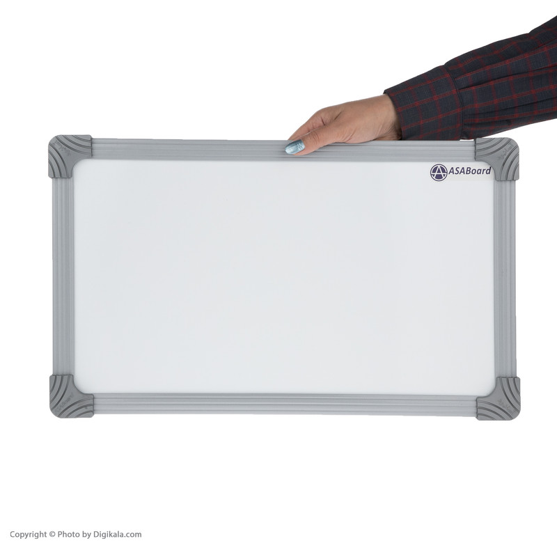 وایت برد مغناطیسی فریم صادراتی این نوع تخته وایت برد دارای خاصیت مغناطیسی(اهنربایی) میباشد.رایج ترین و بهترین نوع تخته وایت بردها ،نوع مغناطیسی است. اصلی ترین انتخاب وایت بردهای مغناطیسی به علت صفحه(ورق)استفاده شده در آن است. ورق وایت برد مغناطیسی، وارداتی از کشور کُره جنوبی به صورت فابریک leaf. کیفیت A(درجه یک)میباشد. متریال: جنس رویه صفحه وایت برد مغناطیسی : ورق وایت بردی کُره ای درجه یک دو پوششه، پاک شدن آسان و راحت بدون ایجاد سایه فریم وایت بردمغناطیسی: آلومینیوم آنادایز شده اکسترود، قالب انحصاری شرکت در تهیه پروفیل آلومینیوم های شرکت آسا برد از بیلت آلومینیوم استفاده میشود بااستفاده از مواد درجه یکــ (شمش)و عمل اکستروژن (شکل دهی و کشیده شدن)سپس عمل آنادایز( آبکاری) قاب الومینیوم مستحکم ،زیبا میشود همچنین مقاوم جهت ضد تاب برداشتن تخته میباشد فریم های الومینیوم وایت برد در رنگ نقره ای به صورت استاندارد میباشد گوشه های وایت برد مغناطیسی: پلاستیک تزریقی EBS انحصاری شرکت شکیل و زیبا جنس پشت کار وایت برد مغناطیسی: ام د ی اف 3 mil واناچای وسوماترا ( Vanachai و Sumatera وارداتی از کشور تایلند) مخصوص برای استفاده در هوای مرطوب و شرایط سخت مقاوم گردیده همچنین مقاوم جهت ضد تاب برداشتن تخته میباشد. ام دی اف نسبت به نئوپان و فیبرهای متفرقه مقاوم تر و سبک تر میباشد که باعث میشود محصول نهایی تولید شده با ظرافت، محکم وسبک باشد.همچنین به علت سطح صاف وکیفیت ام دی اف های وارداتی تشخیص ام دی اف از نئوپان و فیبر های متفرقه در پشت کار برای مصرف کنندگان بسیار راحت میباشد. xxطریقه نصب وایت بردمغناطیسی : تمامی وایت برد های شرکت آسا بُرد دارای قلاب نصب متصل در پشت تابلو میباشند