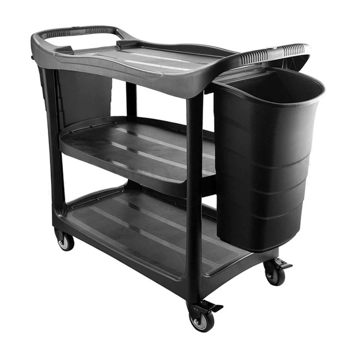 ترولی پلاستیکی مدل 4200 مناسب جهت استفاده در خانه های بزرگ، هتل ها و مهمانسرا ها با قیمت مناسب.این ترولی پذیرایی خانگی دارای سه طبقه از جنس پلی اتیلن مقاوم، دارای چهار چرخ مقاوم، دو عدد سطل کناری و دو عدد چرخ قفل دار میباشد. قابلیت جدا شدن تمامی قطعات، قابل شست و شو و ظاهری بسیار زیبا و شکیل میباشد.استفاده از ترالی های پذیرایی در رستوران ها، هتل ها و تالار های پذیرایی میتواند بسیاری از کارها را آسان کرده و به انجام آنها سرعت ببخشاید.ترالی پذیرایی مدل 4200 یکی از بهترین ترالی های موجود در بازار میباشد.ظاهر شیک، سه طبقه مجزا و جا دار، دو سطل کناری جا دار، چرخ های مقاوم و صنعتی، قابلیت جدا شدن قطعات و چرخ های قفل دار از جمله ویژگی های بارز این ترالی میباشد.این مدل ترولی با ظاهری مدرن و شیک جزو جدیدترین طرح های تولید شده می باشد. این محصول دارای بدنه پلی اتیلن با ضخامت و دارای پایه های مقاوم می باشد.این محصول با یک عدد دستمال به راحتی نظافت می شود و در صورت نیاز قابل شستشو می باشد.این مدل ترالی دارای چهار چرخ صنعتی مقاوم ، روان و بدون صدا می باشد.تمامی قطعات این محصول وسیله پیچ متصل شده است و می توان آن را به راحتی از هم جدا نموده و جهت انبار کردن فشرده نمود.ترولی فوق دارای دو عدد سطل کناری (یک عدد کوچک و یک عدد بزرگ) و قابلیت اتصال و جدا شدن راحت و می توان بر روی آن نایلون قرار داد.دو عدد از چهار چرخ این ترالی قفل دار می باشد که می توان آن را در جایی ثابت نمود.