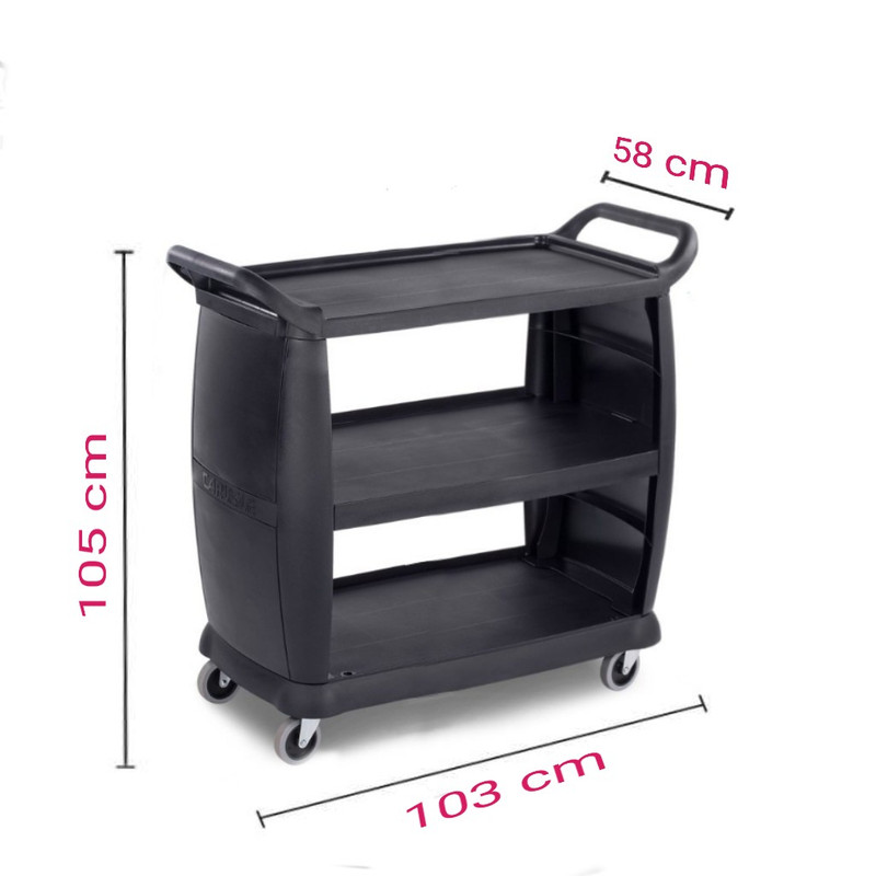ابعاد ترولی طول 103 x عرض 58 x ارتفاع 106 (ابعاد به سانتی متر ) می باشد
