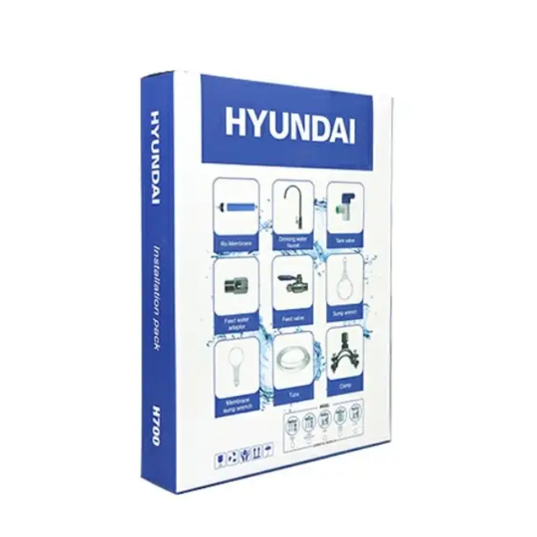 دستگاه تصفیه آب هیوندای مدل H600 اینلاین هیوندای H600 یکی از نمونه های جذاب انواع دستگاههای تصفیه آب هیوندا است که ۶ مرحله فیلتراسیون به روش اسمز معکوس دارد. مهمترین فرق این مدل با دیگر مدلها، فیلترهای پیش تصقیه دستگاه است که به شکل کپسولی طراحی شده و شما برای تعویض این ۳ فیلتر، کل فیلتر (کپسول) را با نمونه جدید جایگزین میکنید که بسیار راحتتر از مدلهای هوزینگ دار هست. دستگاه تصفیه آب هیوندای H600 اینلاین دارای مخزن بزرگ است که یک خانوادهی پر جمعیت را پوشش میدهد. برای طراحی بدنه این دستگاه از فلز استفاده شده است تا ساختار فیزیکی مقاوم و ماندگاری داشته باشد. مشخصات هیوندای H600 اینلاین ابعاد این دستگاه ۴۵*۳۶*۴۵ سانتیمتری و با وزن ۱۸ کیلوگرمی طراحی شده است. پمپ این دستگاه با اتصال برق شهری ۲۲۰ ولت تک فاز کار میکند. حداکثر ظرفیت این دستگاه ۲۸۰ لیتر آب در هر شبانهروز میباشد. همچنین در طراحی این مدل از ۶ مرحله فیلتراسیون استفاده شده است که به ترتیب لیست زیر هستند.