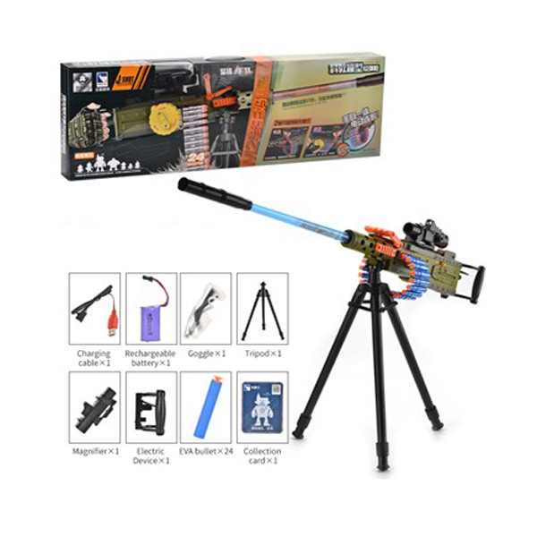 اقلام همراه | دوربین _ یک عدد سه پایه_ یک عدد عینک _ باتری شارژی _ کابل شارژی_24 عدد تیر فومی_ یک عدد دستگیره_ یک عدد کالکشن کارت |