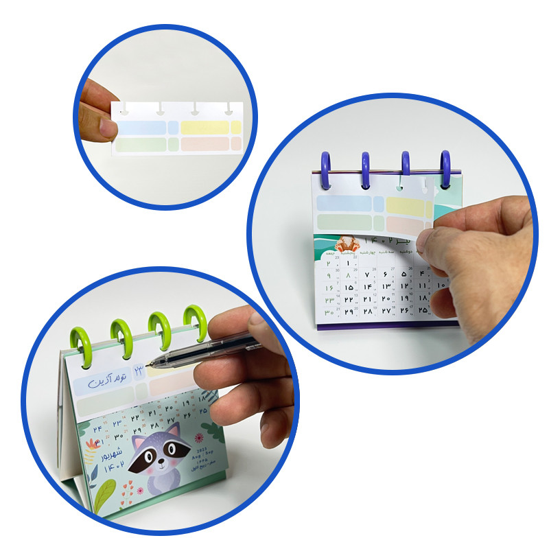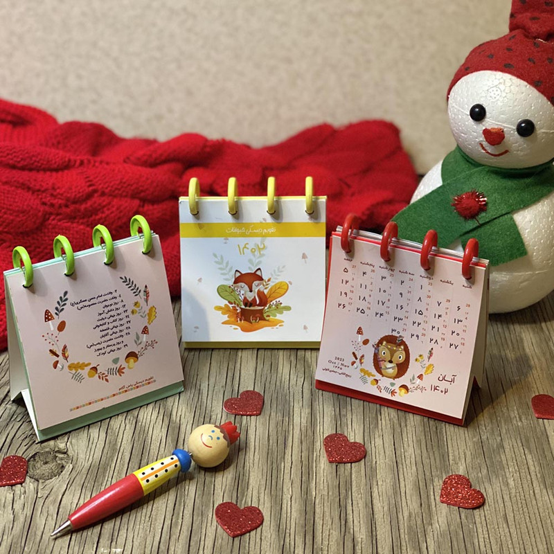 تقویم رومیزی سال 1402 یاس آکام امسال با دیسک های رنگی و مدل های فانتزی و مختلفی ارائه شده اند . سایز این تقویم ها 9.5 در 10.5 سانتی متر است که برگه های گلاسه رنگی مخصوص هر ماه طراحی شده اند. پشت برگ هر ماه نیز مناسبت های آن ماه درج شده است. قابلیت جالب این تقویم جدا کردن برگه ها و مجددا اضافه کردن آن است. همچنین این تقویم دارای برگ هایی برای نوشتن مناسبت های خاص شخصیتان همچون تولد ، قرار ملاقات یا ... است. که می توانید روی هر ماه جایگذاری کنید.