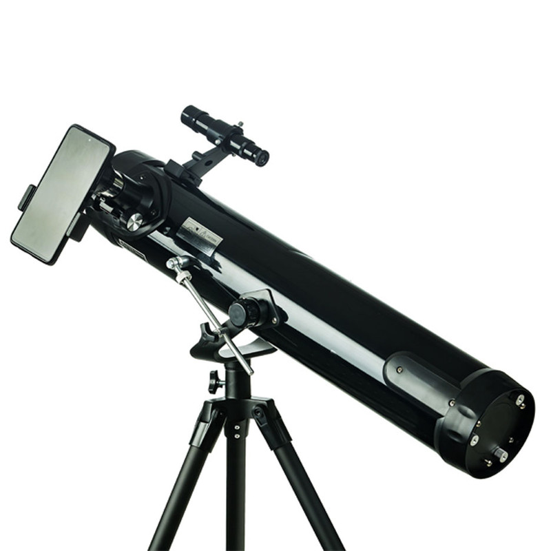 تلسکوپ نیمه حرفهای F70076 PRO ، محصولی پیشرفته برای علاقهمندان به نجوم و رصد آسمان است. این تلسکوپ با بهرهگیری از فناوری اپتیکی پیشرفته و امکانات حرفهای، تجربهای منحصر به فرد از مشاهده اجرام آسمانی را فراهم میکند.سیستم اپتیکی بازتابی-نیوتنی این تلسکوپ با قطر دهانه 76 میلیمتر و فاصله کانونی 700 میلیمتر، تصاویری شفاف و دقیق ارائه میدهد. بزرگنمایی قابل تنظیم از 175 تا 525 برابر، امکان مشاهده جزئیات دقیق سیارات و اجرام آسمانی را فراهم میکند.این تلسکوپ دارای سه عدسی چشمی (4، 12.5 و 20 میلیمتر) برای بزرگنماییهای مختلف میباشد. هم چنین دارای فیلتر ماه برای مشاهده جزئیات سطح ماه می باشد.تلسکوپ نیمه حرفه ای مجهز به هولدر موبایل و ریموت بلوتوثی برای عکاسی حرفهای و بدون لرزش از اجرام آسمانی می باشد. این امکانات به همراه لنز مستقیمکننده تصویر (لنز بارلو 3X برای افزایش قدرت بزرگنمایی)، لنز بارلو 1.5X برای مشاهده راحتتر، شرایط ایدهآلی برای ثبت تصاویر باکیفیت بالا و با کمترین خطای اپتیکی را فراهم میکنند.این تلسکوپ امکان مشاهده دقیق سیاراتی مانند مشتری و قمرهای آن، حلقههای زحل، خوشههای ستارهای، سطح ماه و بسیاری از اجرام آسمانی دیگر را فراهم میکند. این تلسکوپ برای رصد ماه و ستارگان، عکاسی با موبایل، آموزش نجوم مناسب میباشد.مدل PRO به همراه هولدر موبایل ارائه میشود که امکان ثبت تصاویر با تلفن همراه را فراهم میکند