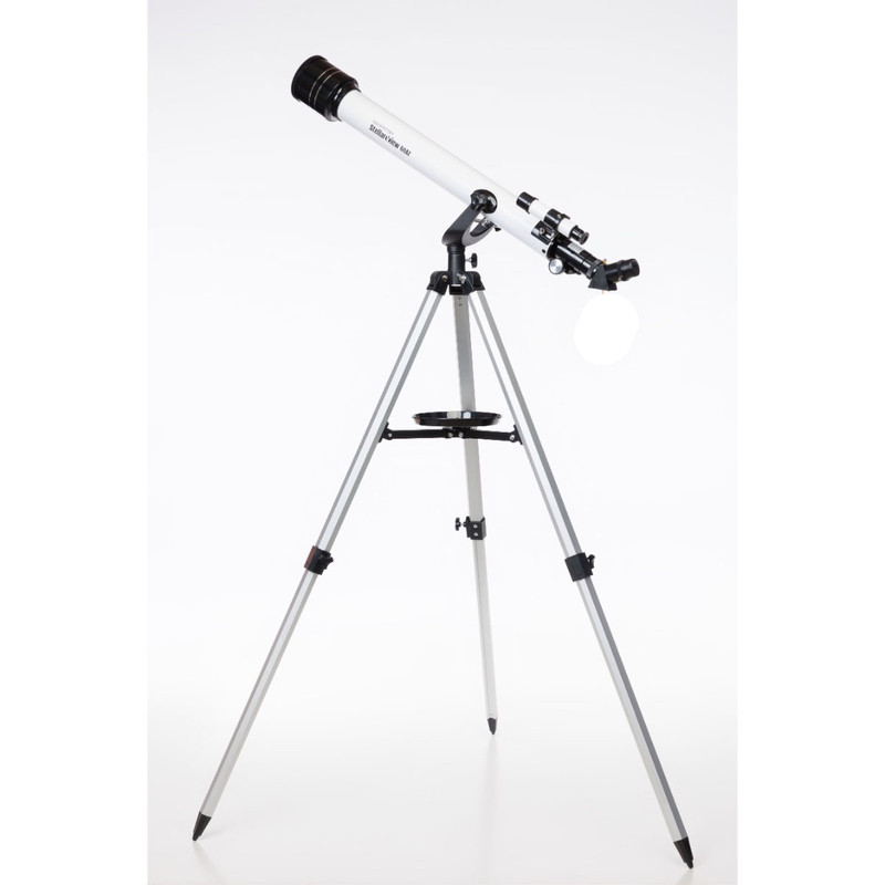 استلارویو 60AZ در حد توان خود، رصد ماه، سیارات منظومه شمسی، خورشید (تنها با استفاده از فیلتر استاندارد رصد خورشید)، اجرام درخشان اعماق آسمان مانند سحابی شکارچی(Orion Nebula)، کهکشان آندرومدا و خوشههای ستارهای را برای شما فراهم میکند.وزن لوله تلسکوپ و لوازم همراه مانند چپقی ۹۰ درجه مستقیمکننده، سه عدد چشمی ۶، ۱۲٫۵ و ۲۰ میلیمتر، جوینده ۵ در ۲۴، بارلو ۳ برابر کننده و رابط عکاسی موبایل و فیلتر ماه در حدود یک کیلوگرم و سه پایه و مقر سمتیارتفاعی AZ نیز ۱٫۵ کیلوگرم است، که همگی به سادگی داخل کیف حمل برزنتی جا شده تا جابهجای و حمل و نقل تلسکوپ بسیار آسان باشد.در آسمان شب با تلسکوپ شکستی 60 میلیمتری نایت اسکای مدل Stellarview 60AZ چه میبینیم؟ منظومه شمسی ، ماه: دهانهها، کوهها و محلهای برخوردی سطح ماه ، عطارد: اهله به سختی قابل رصد است ، زهره: اهله به سختی قابل رصد است ، مریخ: به صورت یک گوی سرخ ، مشتری: دو نوار یا کمربند در شرایط رصدی مناسب، زحل: حلقه از گوی قابل تشخیص است ، اورانوس ونپتون همچون یک ستاره به نظر میرسند و همچنین اجرام اعماق آسمان و خوشههای ستارهای باز از لیست مسیه ،خوشههای کروی به صورت نقاط نورانی ، سحابیها با بزرگنمایی کم قابل و کهکشانها به صورت لکههای مه آلود قابل رویت هستند .تلسکوپ شکستی 60 میلیمتری نایت اسکای مدل Stellarview 60AZ را میتوان طی روز به عنوان یک دوربین و جهت مشاهده مناظر زمینی، دیدن پرندگان و محیط اطراف و دوردست استفاده کرد.