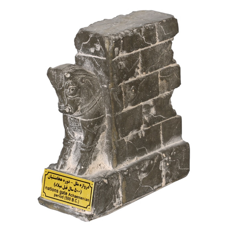 مجسمهها میتوانند از هر جنسی باشند، میتوانند در هر اندازه و شکلی باشند، پیچیده یا ساده باشند. اما به طور قطع هر کدام پیامی برایمان دارند. میتوانند قهرمانهای اساطیری باشند که در داستانها اسمشان را شنیدهایم، یا میتوانند شکلهای ساده هندسی باشند. میتوانند پیکره شاعر محبوبی بر سر میدان شلوغ شهر باشند، یا حتی پرنده سفالی روی طاقچه. مجسمهها مثل سفر میمانند. سفری از زندگی روزمره به سوی احساس و اندیشه، به سوی زیبایی و از همه مهمتر به سوی گفتگوی تمدنها، فرهنگها و اندیشههای مختلف و متفاوت با یکدیگر. مجسمهها میتوانند بیانگر یک اندیشه، فرهنگ یا تمدن باشد. فرهنگ و اندیشهای که گاهی اوقات از قرنهای گذشته با انسان سخن میگوید. تندیس پیش رو بطور اقتباسی از دروازه ملل تخت جمشید و در ابعاد 4x8 و ارتفاع 9 سانتی متر به رنگ طوسی عرضه می شود.