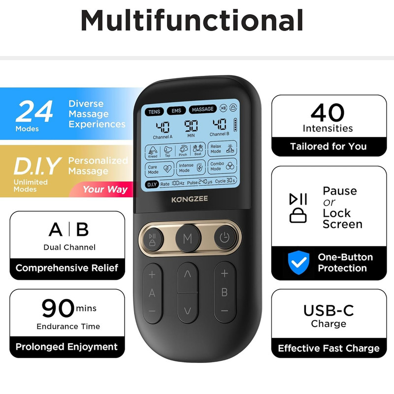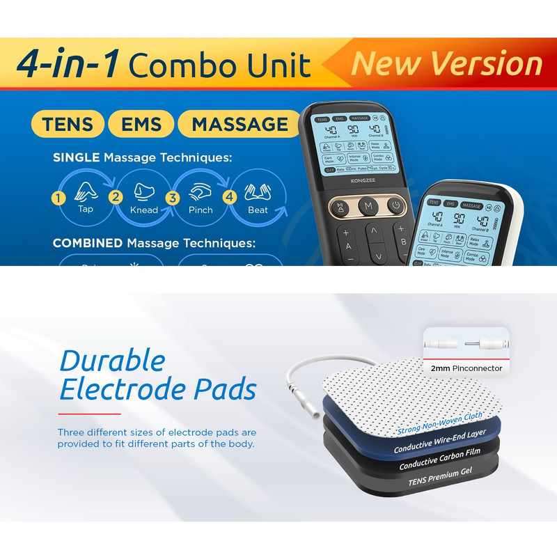 | سایر توضیحات | تنس عضلانی کنگزی مدل AS9026 ۴ در ۱ - دستگاه DIY و Tens و EMS و ماساژ تحریک کننده عضلات، دستگاه درمانی TENS دو کاناله برای تسکین درد، ماساژور پالس الکترونیکی قابل شارژ دارای تاییدیه FDA، با ۱۲ پد الکترود قابلیت نوآورانه ۴ در ۱ : برند Kongzee با بسیاری از کاربران tens تبادل نظر عمیقی داشته و ۲ سال را صرف توسعه اولین دستگاه tens با عملکرد ۴ در ۱ در بازار کرده است. در مقایسه با دستگاههای tens موجود در بازار، این محصول ترکیبی بینظیر از حالتهای استفاده حرفهای و شخصیسازی شده است و به کاربران دستگاههای tens اجازه میدهد تا طیف وسیعی از نیازهای مختلف را در یک دستگاه واحد برآورده کنند. پدهای الکترود پیشرفته : پدهای الکترود پیشرفته ما، که از جدیدترین مواد ساخته شدهاند، تناسب بهینهای با پوست دارند و لمسی نرم و سازگار با پوست برای تسکین مؤثر درد فراهم میکنند. ماهیت قابل استفاده مجدد آنها به راحتی میافزاید و تجربهای پایدار و راحت را در روال مدیریت درد DIY شما تضمین میکند. طراحی نفیس : دستگاه ما با بهرهگیری از جدیدترین طراحی ظاهری، رابط کاربری واضحی همراه با عملکردهای قدرتمند دارد. با حالتهای مختلف موجود، تجربه ماساژ خود را مطابق با ترجیحات خود تنظیم کنید و تکنیکی را کشف کنید که به بهترین وجه با نیازهای تسکین درد شما مطابقت دارد. قدرت بیدردسر: با دردسر تعویض باتری خداحافظی کنید. دستگاه ما مجهز به باتری قابل شارژ است که عمر باتری فوقالعاده طولانی را برای آرامش و تسکین بیوقفه در رژیم تسکین درد خانگی شما ارائه میدهد. بسته جامع : بسته جامع شما شامل ۱ واحد TENS، ۲ سیم، ۱۲ پد الکترود، صفحات پلاستیکی و یک کیف مناسب است - هر آنچه برای یک تجربه تحریک عضلانی DIY TENS EMS یکپارچه و متناسب با اهداف تسکین درد خود نیاز دارید. واجد شرایط FSA/HSA : این محصول واجد شرایط FSA/HSA است، به این معنی که میتوانید از حساب پسانداز سلامت یا هزینههای انعطافپذیر خود برای خرید آن استفاده کنید. |