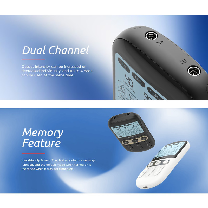 | کاربرد | تسکین درد عضلات ،ماساژ دهنده عضلات، دستگاه درمانی TENS دو کاناله برای تسکین درد، ماساژور پالس الکترونیکی قابل شارژ |
