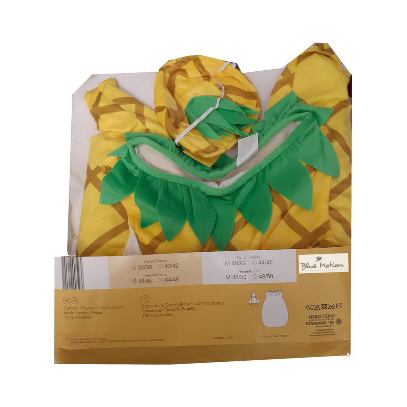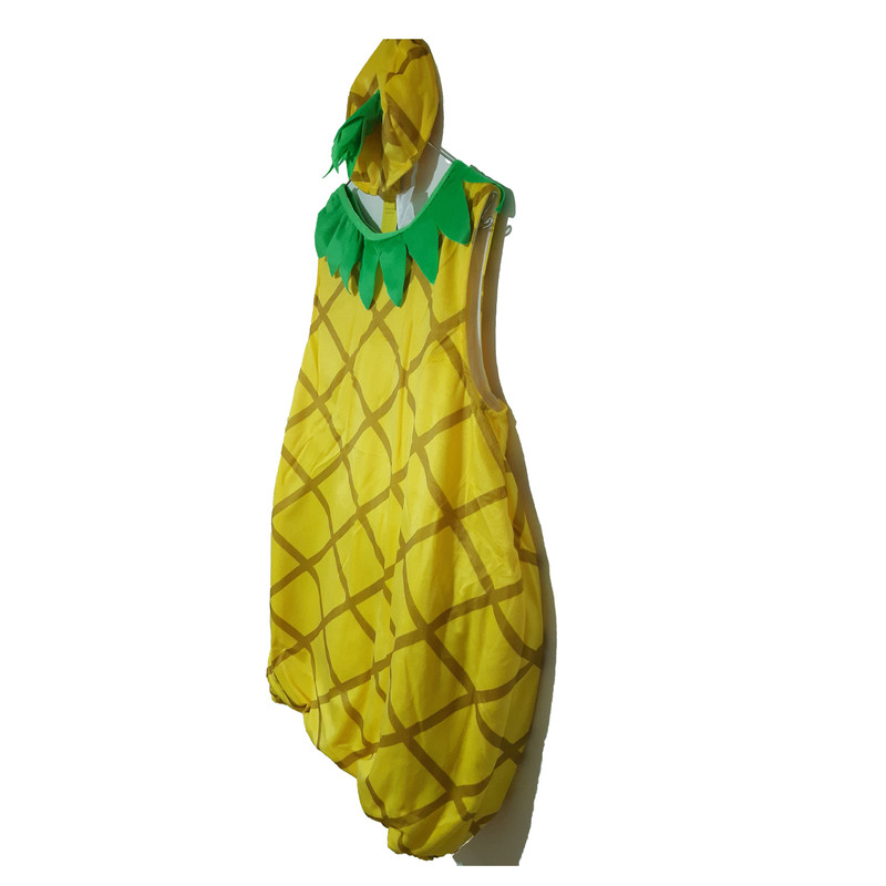این تن پوش زنانه/مردانه بزرگسال، طرح میوه آناناس بوده و شامل یک پیراهن بلند و یک کلاه به رنگ زرد و سبز است که مادران و پدران عزیز می توانند با پوشیدن این تن پوش اوقات مفرحی را برای فرزندان خود رقم بزنند. جنس این تن پوش 100% پلی استر است