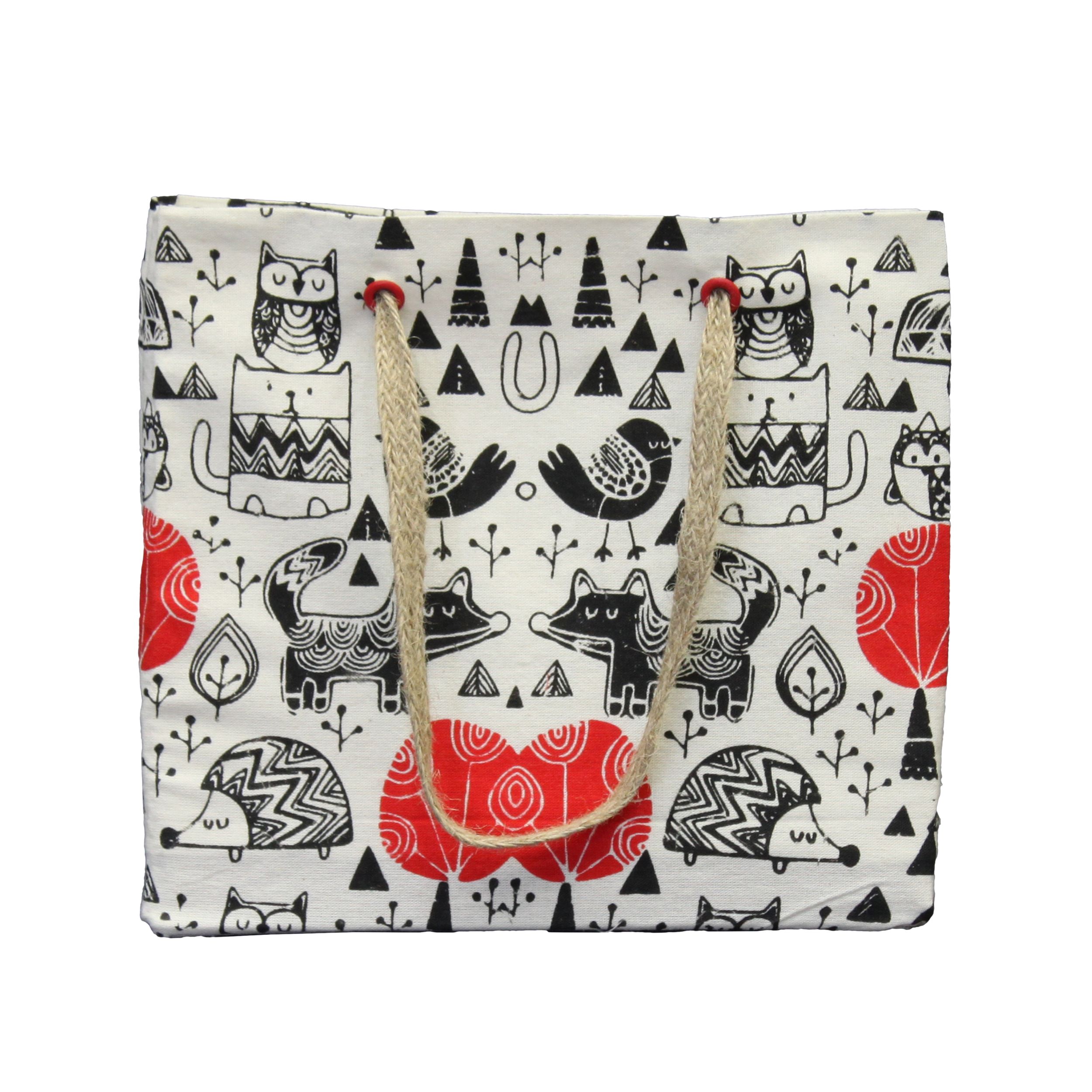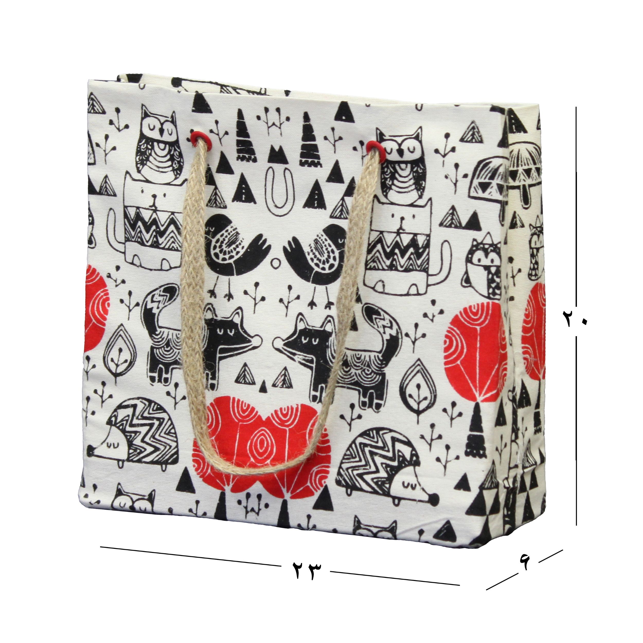 ساک دستی پارچه ای مدل توت بگ طرح حیوانات دهکده کد D2 یک انتخاب عالی برای خرید,هدیه,حمل ظرف غذا و وسایل شخصی و ... می باشد. این محصول از پارچه متقال با تراکم بسیار بالا و جنس محکم و با دوام و در عین حال نرم تولید شده است. چاپ استفاده شده نیز از چاپ دستی پیگمنت که می باشد که کاملا قابل شستشو می باشد.جنس بند استفاده شده در این محصول نیز از کنف محکم و با دوام می باشد و نیازی به نگرانی درباره پاره شدن آن نباشید.همچنین در کف محصول یک مقوا کارتونی محکم نیز قرار گرفته است تا وسایل سنگین نیز بتوانید در آن قرار دهید.این کار در سایز های مختلف و طرح های مختلف زیبای دیگر نیز موجود می باشد.با خرید این محصول استفاده از کیسه های نایلونی و پلاستیکی را کاهش دهید.